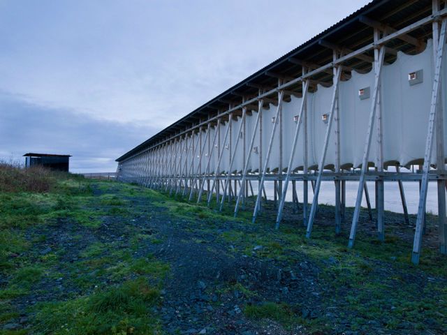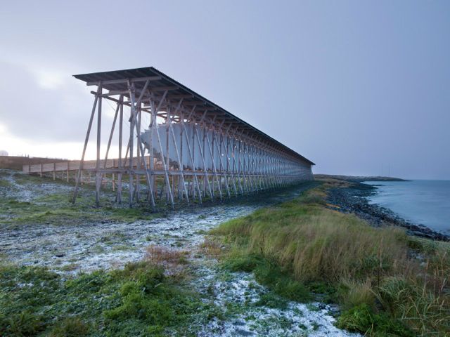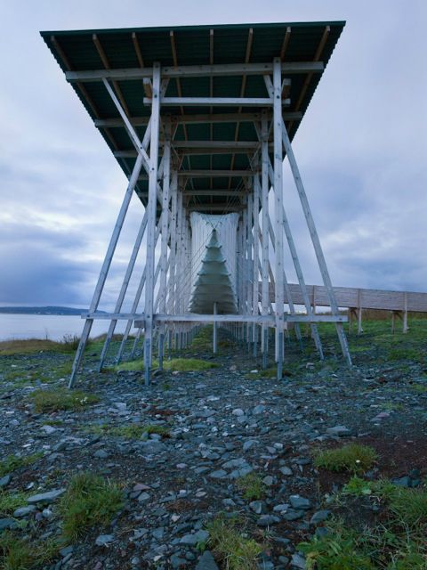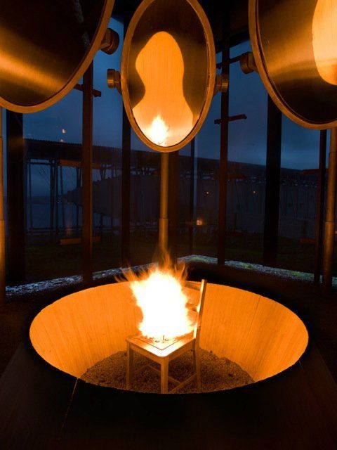This project caught my eye from the first moment I saw it. The Steilneset Memorial is composed of two pieces- one completely by Peter Zumthor, the other an exhibit by the late Louise Bourgeois (1911-2010), within a structure by Zumthor, the Steilneset Memorial in Vardø, Norway is a tribute to the dark, early 17th century and it’s witch hunts. In total, 135 individuals were indicted for the crime of sorcery (it’s never as much fun in the real world), of which 91 were convicted. The Zumthor structure is a suspended fabric cocoon, hung within a pine scaffolding. Within, a long hallway is host to 91 hanging lightbulbs behind 91 windows, paying homage to the needlessly lost, probably for nothing more than being left handed. Within the smoked glass second structure, the Louise Bourgeois installation, entitled The Damned, The Possessed and The Beloved is, (if it’s possible) more powerful than the first instillation. It is a flaming chair within a stark concrete cone, reflected from all around by mirrors. Mere images of the instillation can bring on chills. And did for me.