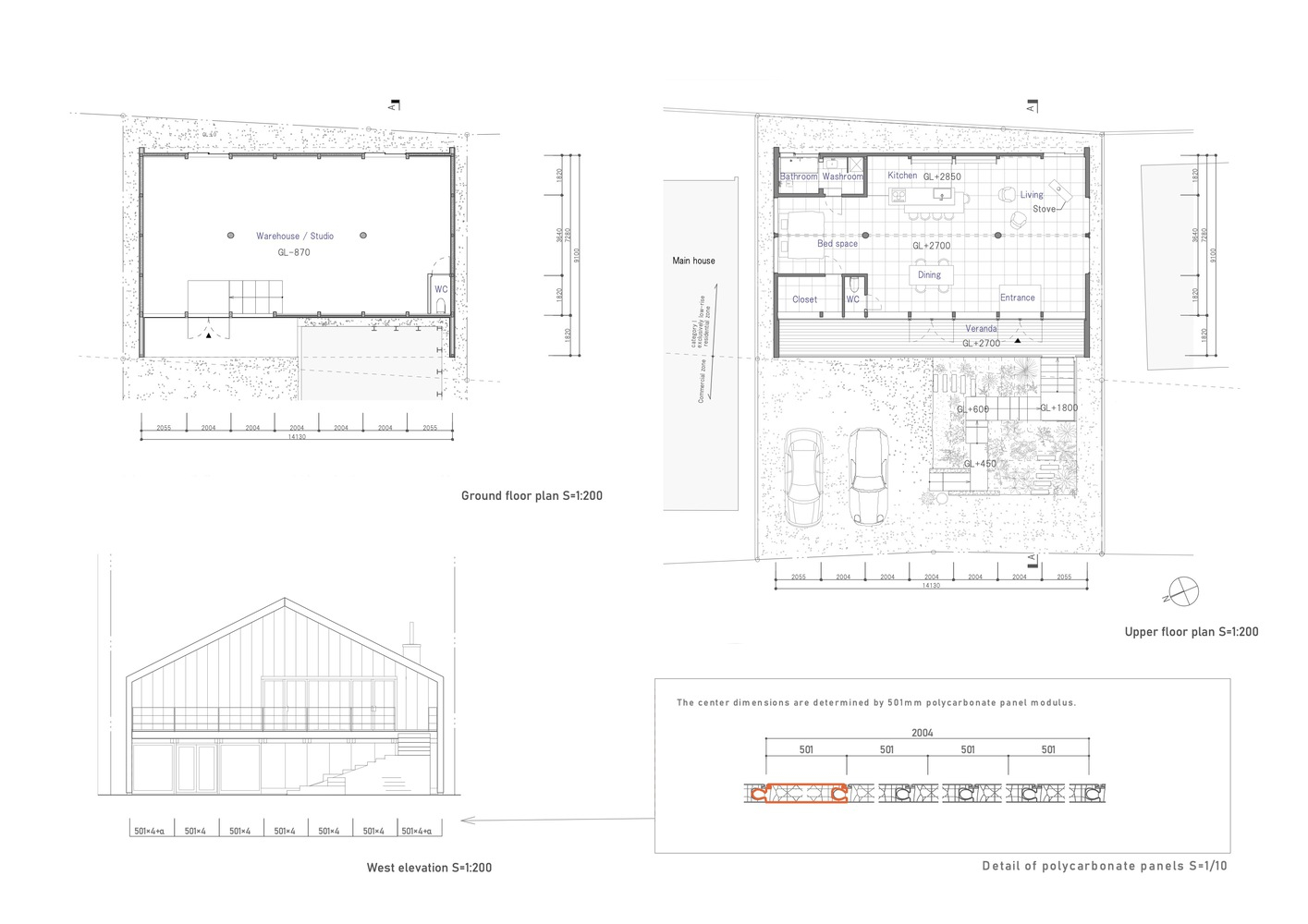 Tachikawa ANNEX House is an additional structure to the original corporate headquarters of a clothing maker and the owner’s house, which we designed around ten years ago. The site consists of multiple zones with different regulations, resulting in varied structures and heights. While the main house is a five-story reinforced concrete building that stands upright, we decided to create a light wooden building in the expanded area at the rear of the site, specifically in the low-rise residential zone.