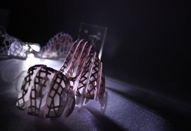 The controlled release of moisture to the air results in varying levels of humidity used to trigger the responsive capacity that is ingrained in the wood’s hygroscopic behaviour and anisotropic characteristics (different material properties depending on its grain directionality). The hygroscopic property of wood is a process of absorbing and releasing moisture to match the humidity content of the surrounding environment which causes the wood to swell, shrink and deform accordingly. The process is completely reversible and the wood will regain its original shape once the humidity level is back to original. This dimensional change is researched and employed to trigger the shape change of a series of responsive elements, opening and enclosing the herbal bath pods.