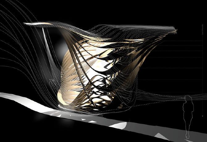 Taipei Herbal Baths, Linda Hagberg shared with us her design for ‘Taipei Herbal Baths’ investigates a new mode of responsive architecture based on the interaction between inherent material behavior and environmental variations. The hygroscopic capacity of wood, its reaction to the surrounding levels of humidity, is utilized to construct a climate responsive architecture. The project explores the relationships between the bather, releasing moisture to the environment, and the climate, causing fluctuations in relative humidity which, in turn, triggers the changes of material-innate movements of the responsive wood boundaries.