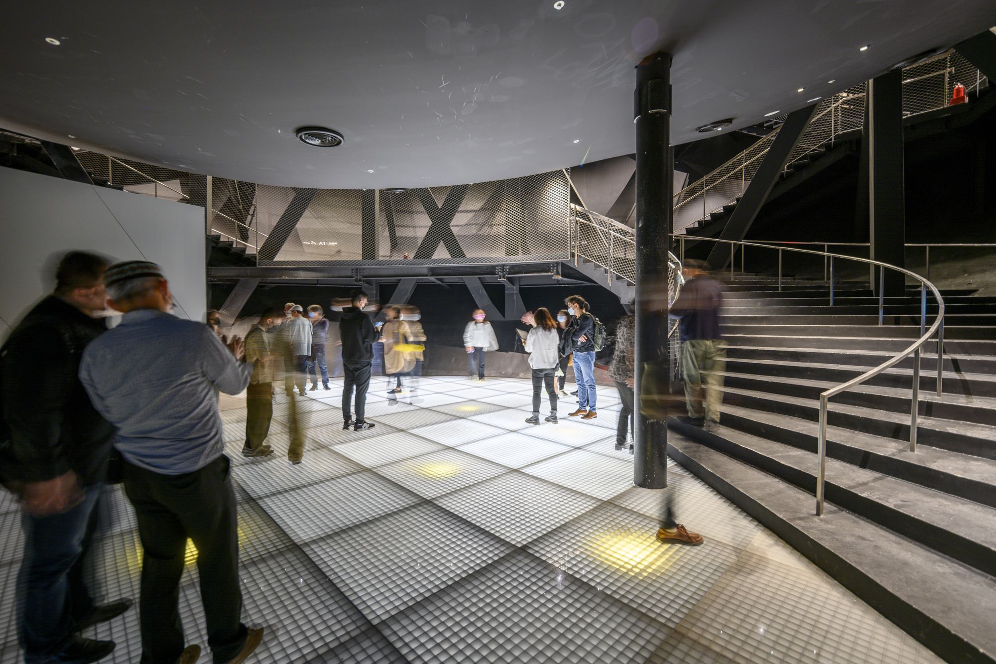 With or without a ticket, the general public is welcomed into the theater via a Public Loop, which runs through the theater’s infrastructure and generally concealed production rooms. Visitors may view the performances and technical spaces between the theaters through portal windows along the Public Loop.