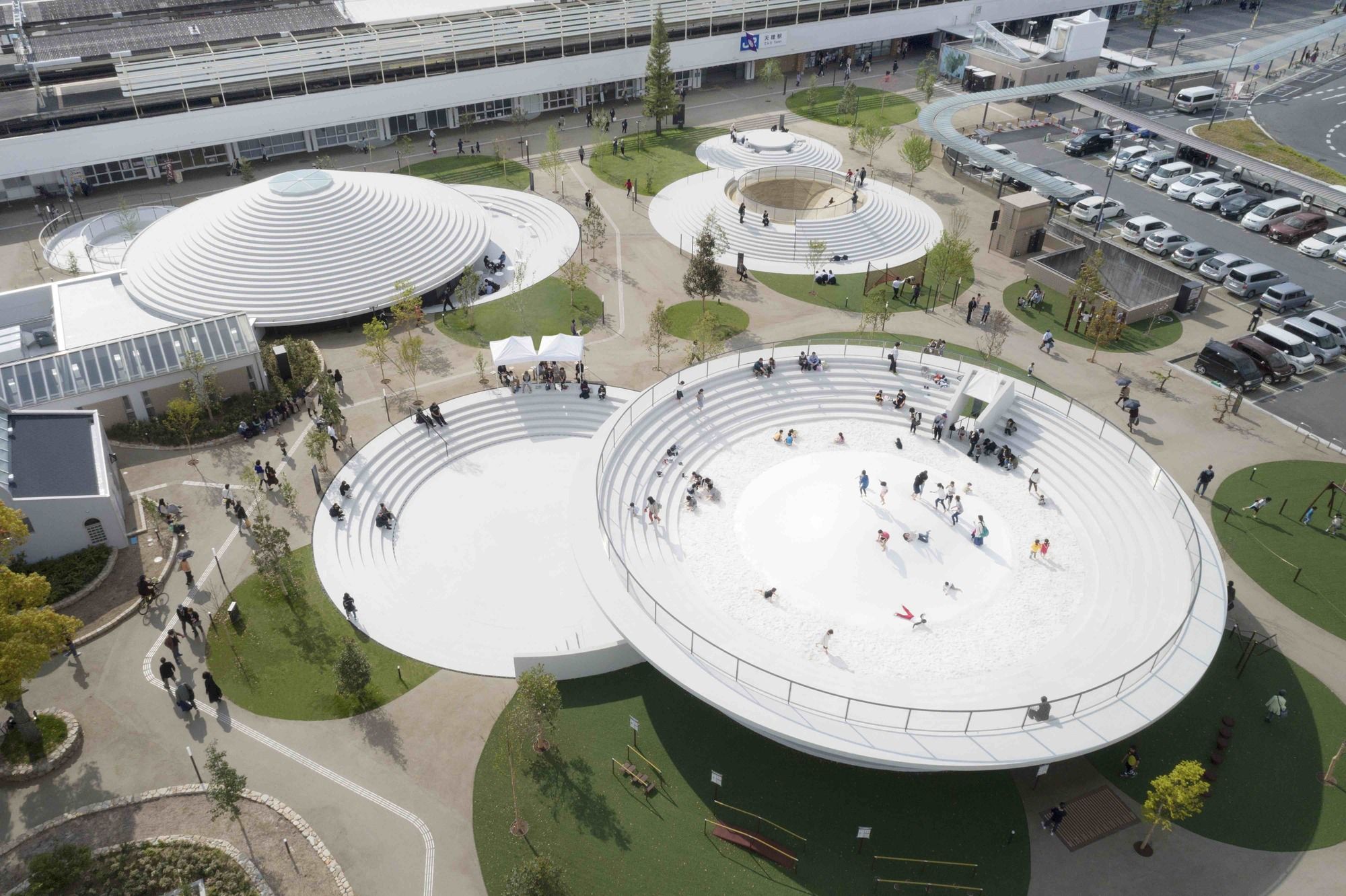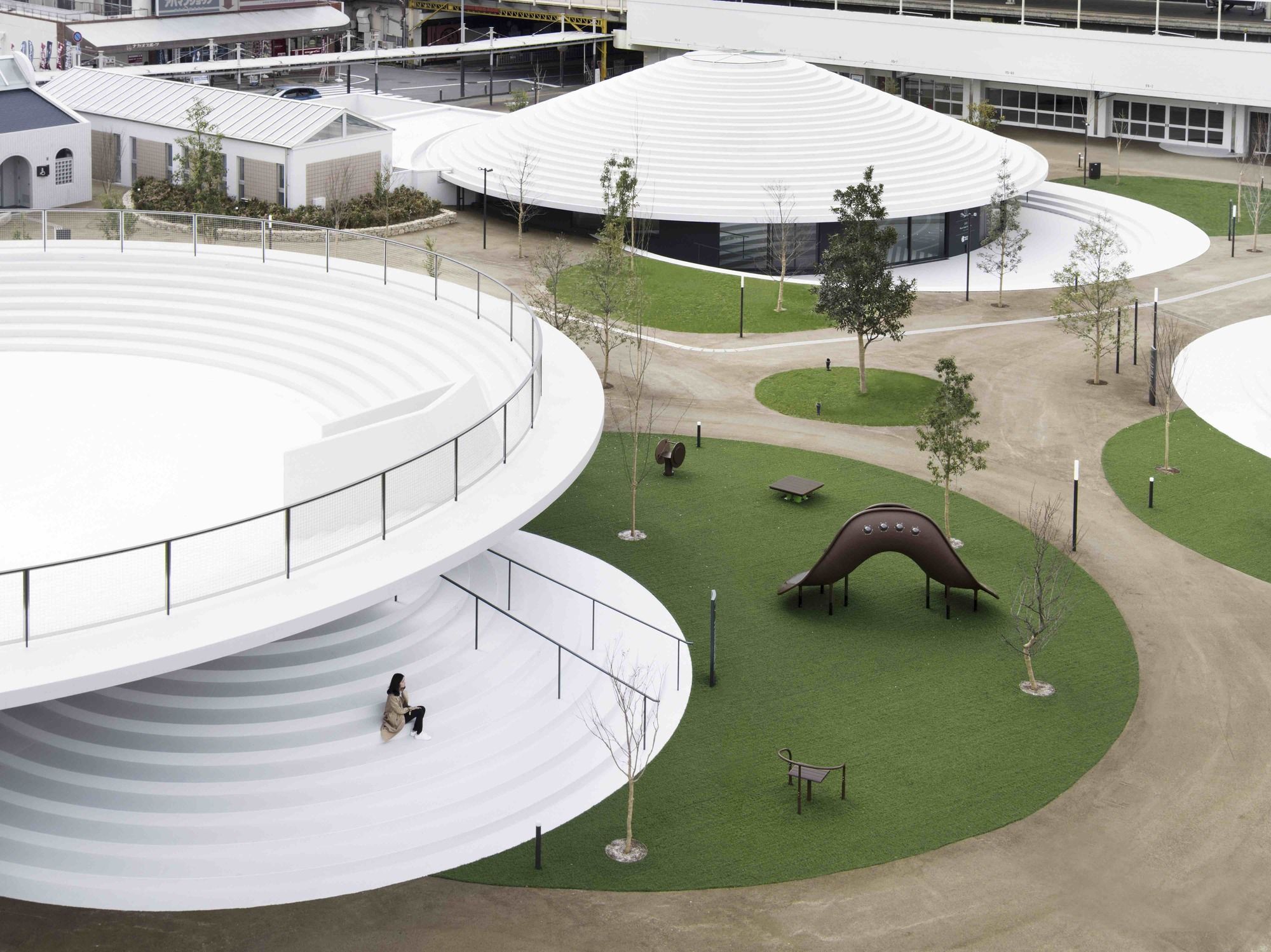 The plaza’s name, CoFuFun, combines the main design motif, the cofun, with colloquial Japanese expressions. “Fufun” refers to happy, unconscious humming: the design for the plaza should offer a convivial atmosphere that unconsciously leads visitors to hum, happily, while they’re there.