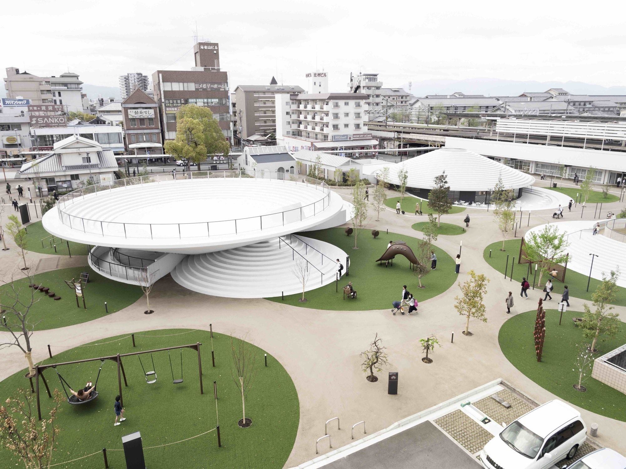 The master plan for the station plaza at Tenri Station in Nara prefecture, located in the southwest region of Japan. The plan for the 6,000 square meter area includes bicycle rentals, a cafe and other shops, an information kiosk, a play area, outdoor stage, and meeting space. The project goal was to encourage local community revitalisation by providing a space for events, tourist information dissemination and leisure facilities for local residents