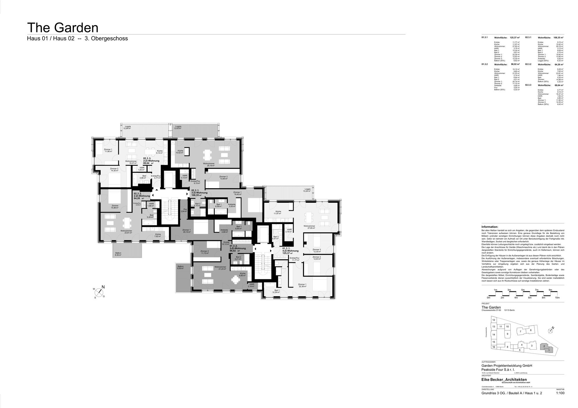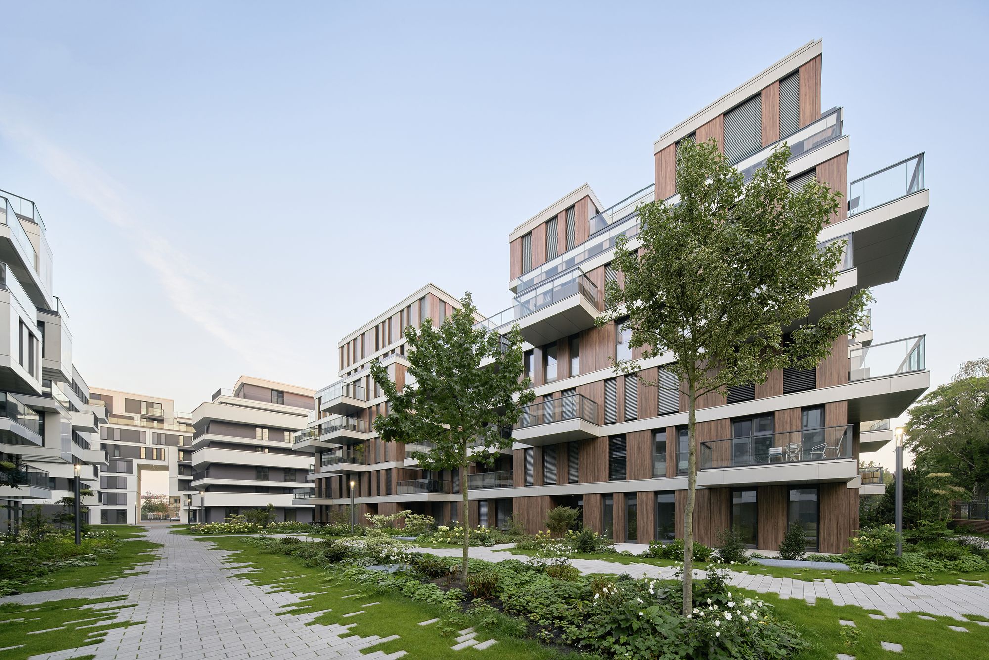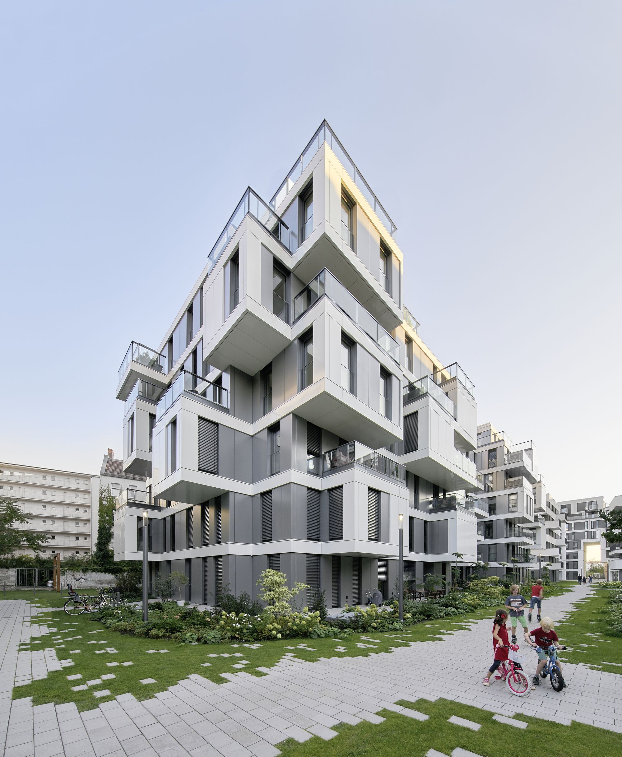 161 exquisite rented flats, 120 owner-occupied flats, 7 commercial units and 121 underground parking spaces find a place there now. Spacious patios, cantilevered balconies as well as the wonderfully arranged city garden give “The Garden” its name.