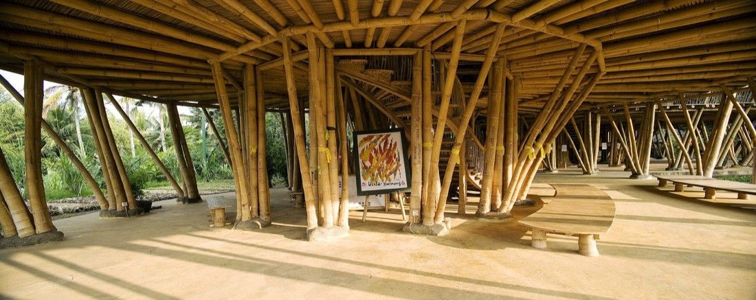 Environmentalists and designers John and Cynthia Hardy wanted to motivate communities to live sustainably. Part of that effort was to show people how to build with sustainable materials, namely bamboo. They established the Green School, and its affiliates: the Meranggi Foundation, which develops plantations of bamboo plants through presenting bamboo seedlings to local rice farmers; and PT Bambu, a for-profit design and construction company that promotes the use of bamboo as a primary building material, in an effort to avoid the further depletion of rainforests.