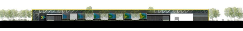 For the same esthetic reasons, the architects also took the time to hide all mechanical equipment into the main programmatic bar (including the dining and recreational areas, the offices and the equipment room). Its roof, painted in yellow, creates a metaphorical link between the centre entrance and the wooded area located at the rear of the building. In regards with its concerns for environmental and aesthetic quality, the firm did not only preserve the 230 original trees of the wooded area but also planted 600 new ones. In order to complete the dialogue with the City, Lemay prohibited blank walls so common in this type of projects and graced the building’s facade on Stinson Street with large windows, inviting passersby to discover the inside life of a transport centre.