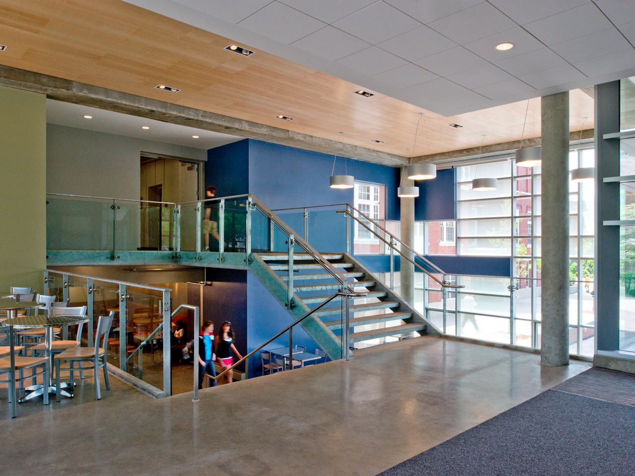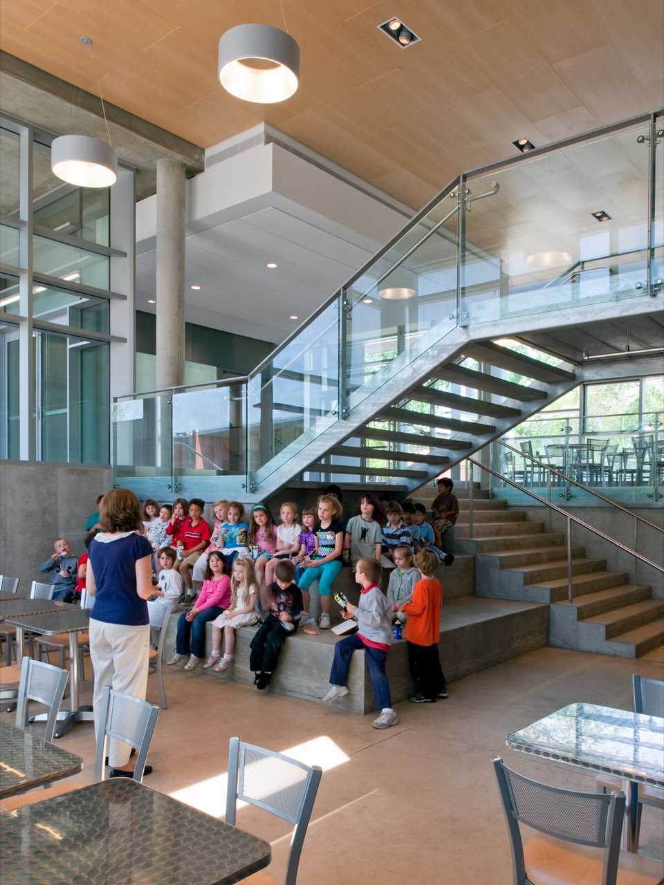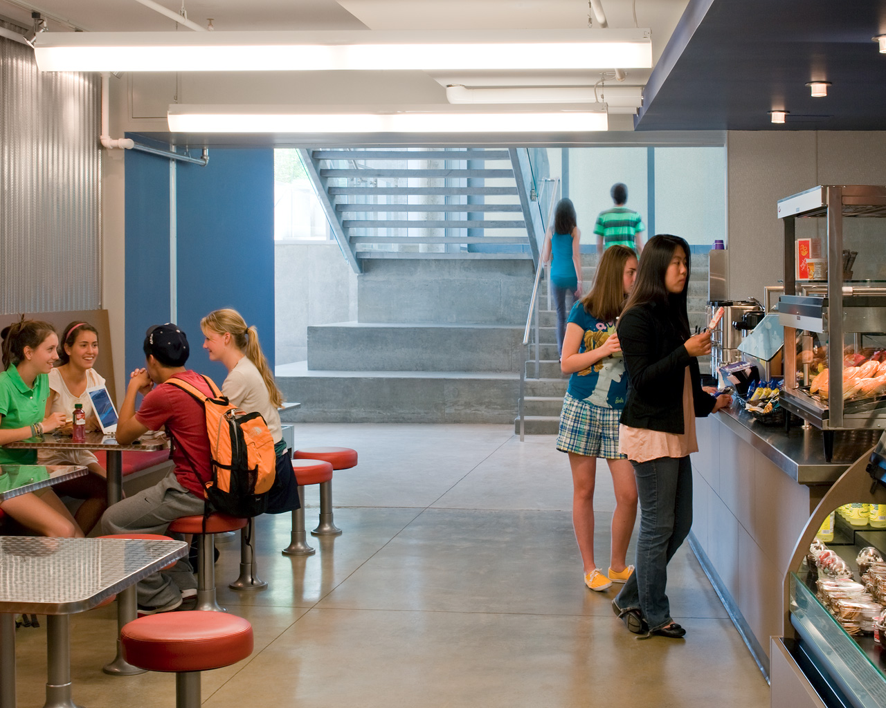Every school day, over 1,000 students enter this structure, and from there, they find the adjacent renovated café, lockers, classrooms, and information center — and each other. Staff and students, faculty and parents, have made this their small and visible hearth, with views of the campus, and to the historic neighborhood beyond.
