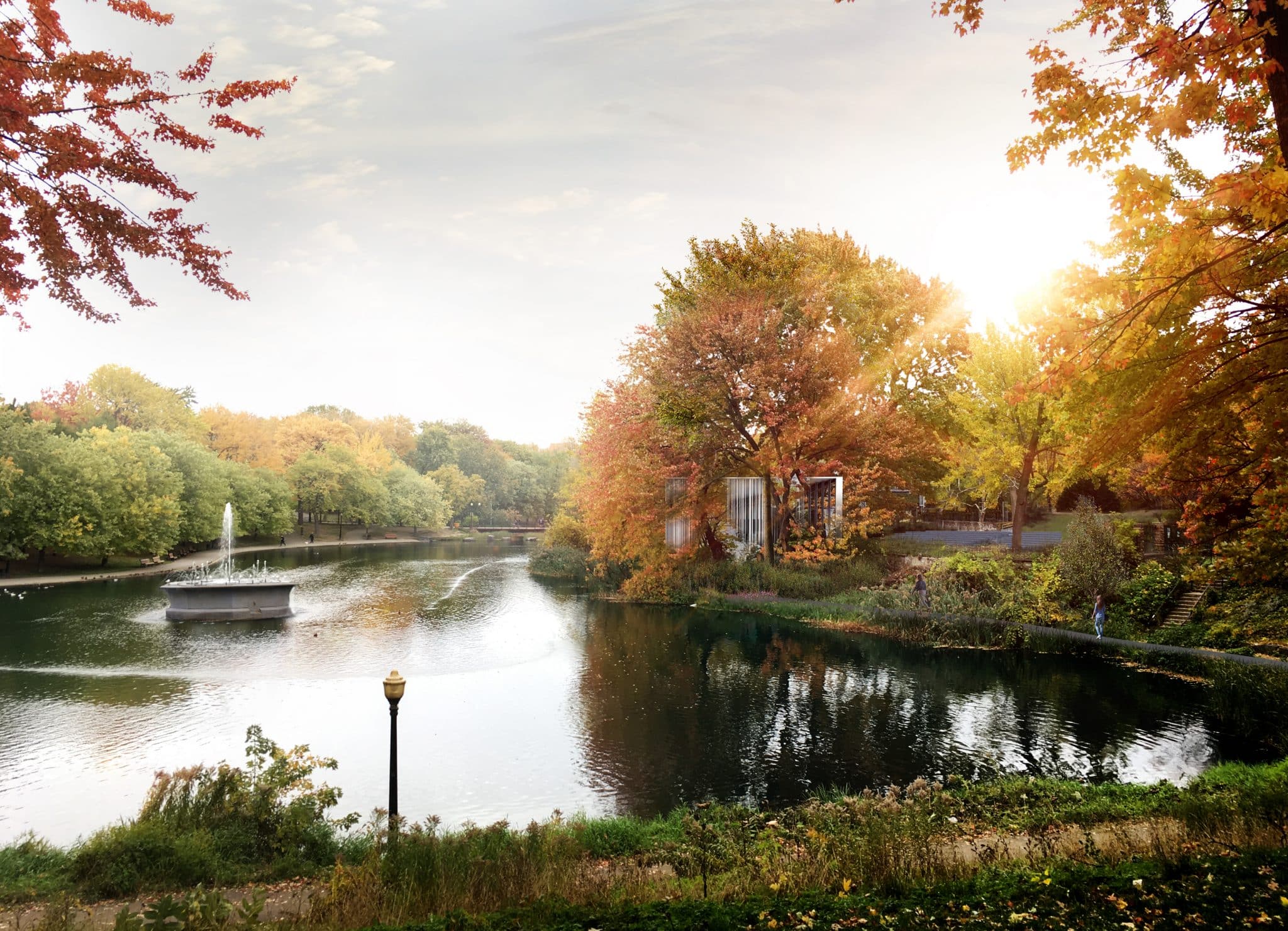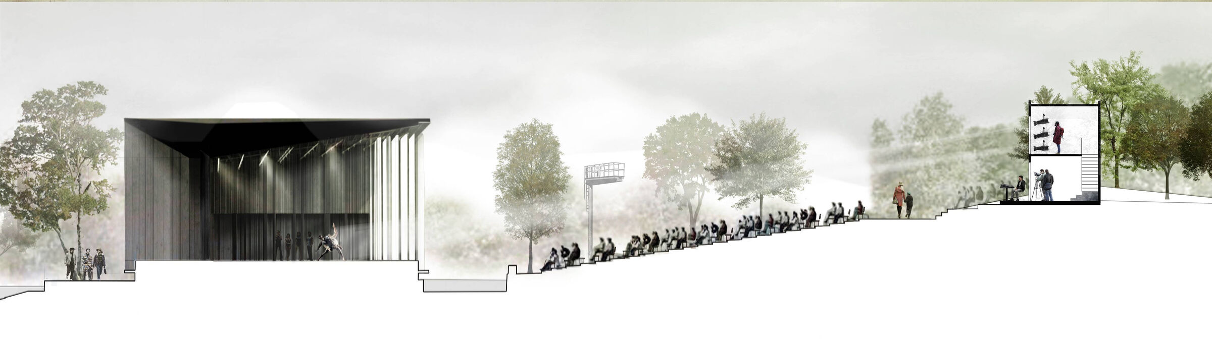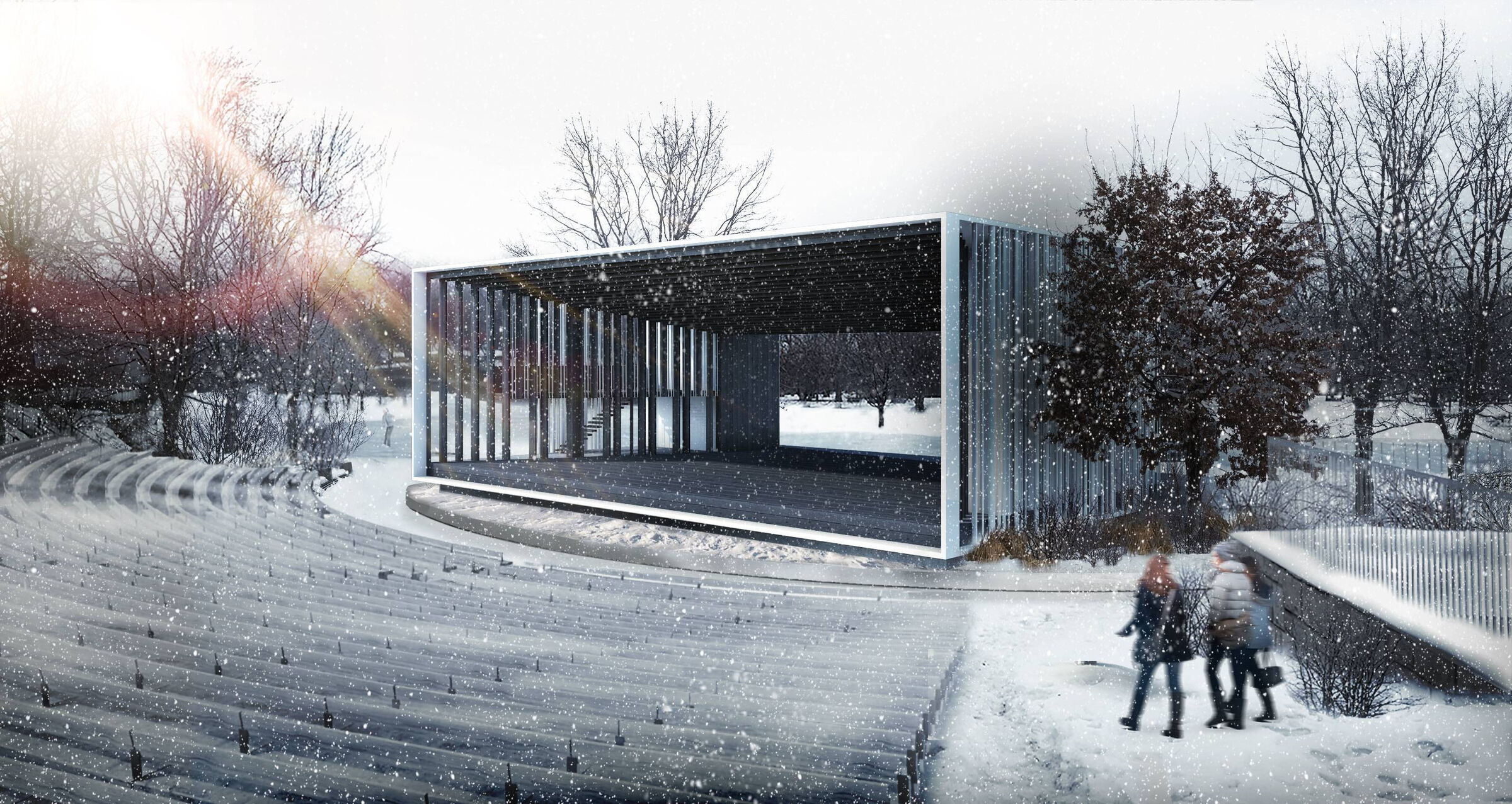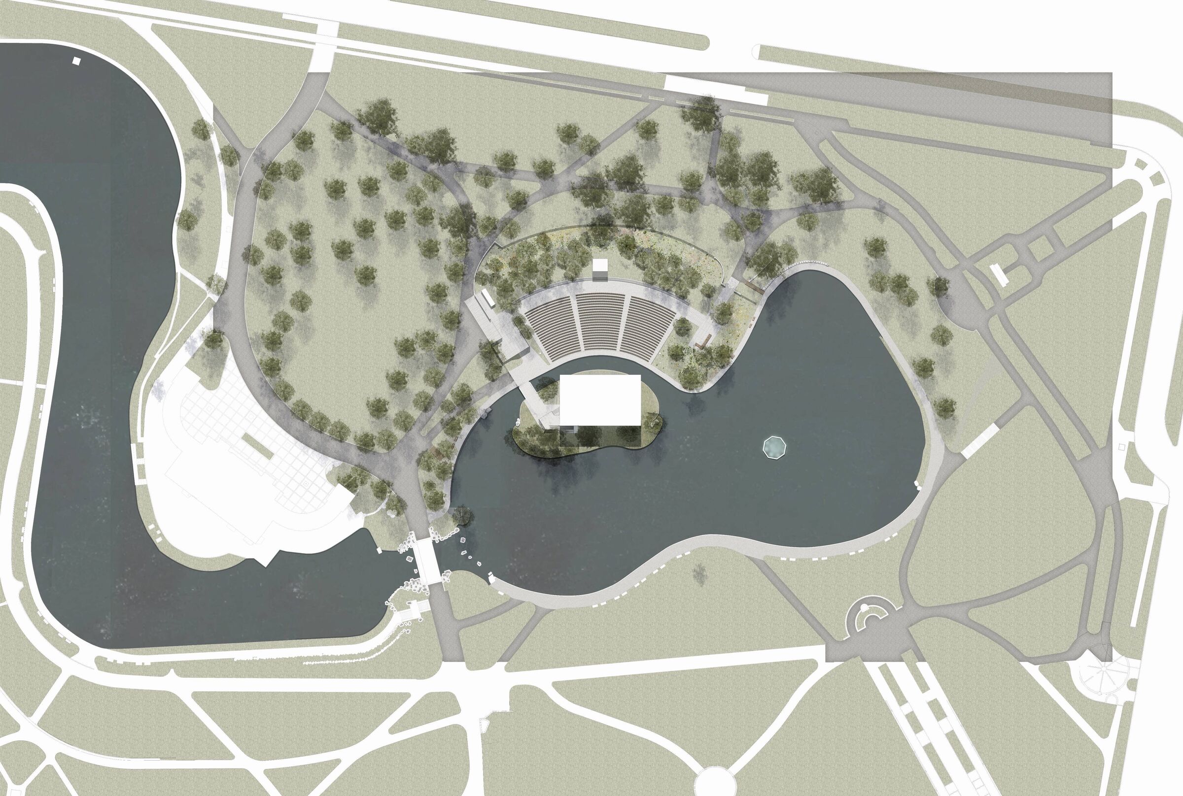 Accessibility is a central motif in this transformation, extending its embrace beyond the stage’s spotlight. New entrances have been thoughtfully incorporated, and a pedestrian pathway has been spread around the park’s tranquil water basin. Celebrating the theater’s prominence, low-level foliage and the existing canopy have been meticulously preserved, lending it a vibrant distinction amidst the surroundings.