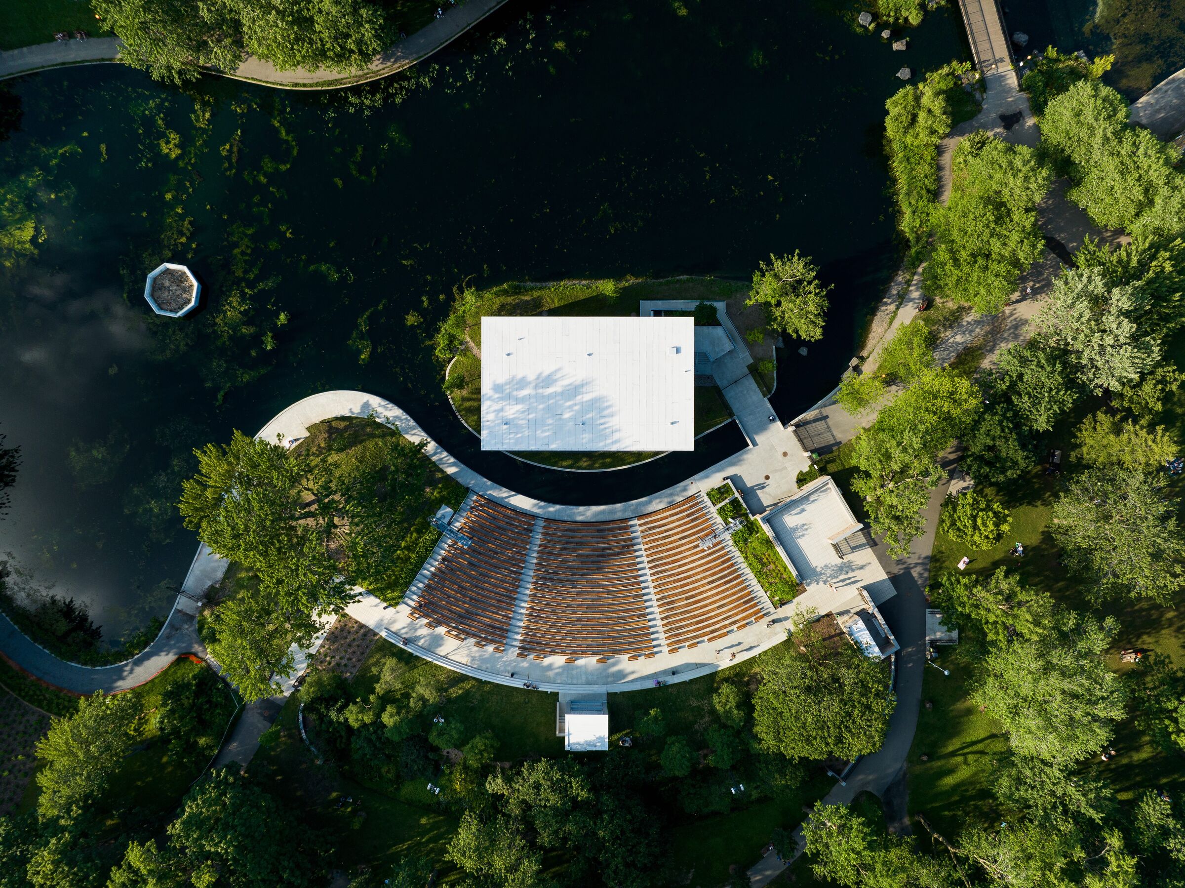 Lemay’s architectural prowess ingeniously weaves the theater’s design with the lush parkland, creating an immersive experience where the boundary between constructed space and natural expanse blurs seamlessly. The theater’s structure now seamlessly merges with the park, framing panoramic vistas that embrace both the stage and the verdant backdrop. This harmonious integration enriches the experience of theatergoers and strollers alike, casting a spell that transports them into a realm where art and nature intertwine.