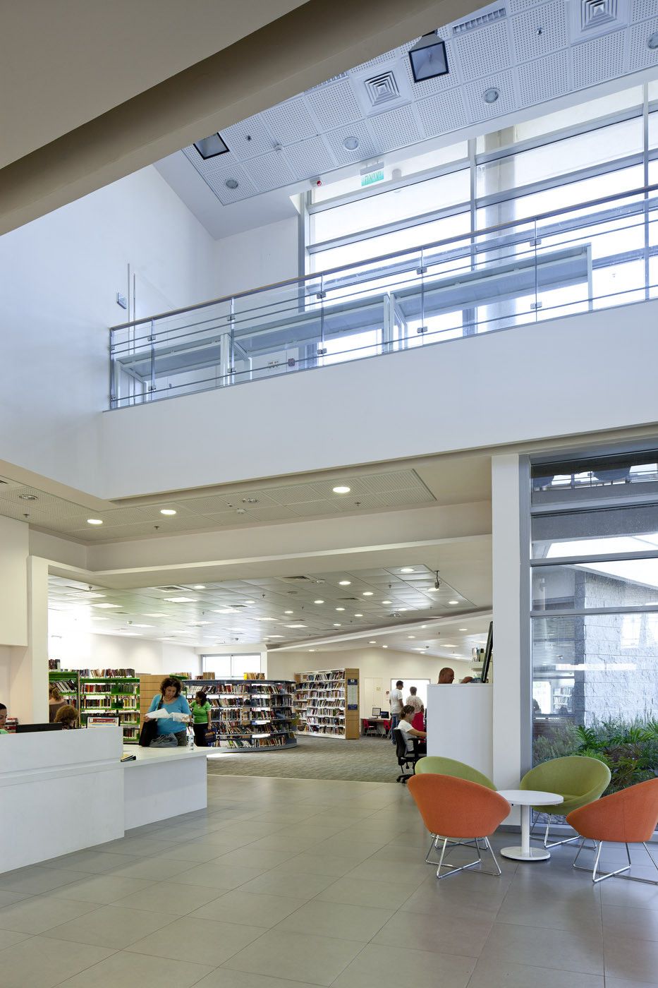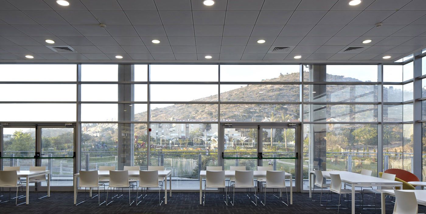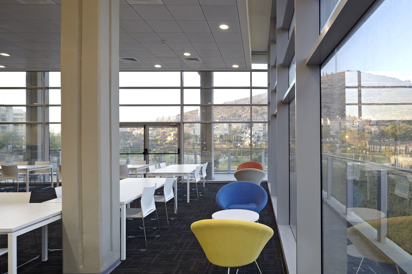 The building community porch allows the library visitors to have an external break and enjoy the view of the Carmel Mountain.