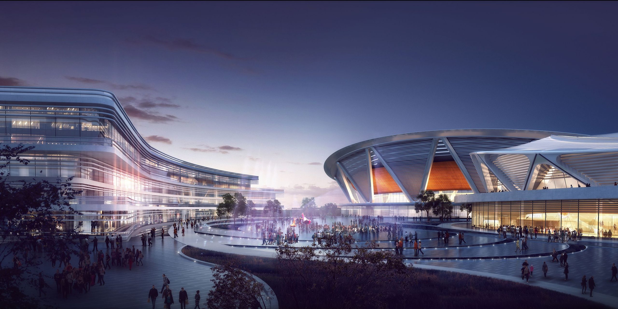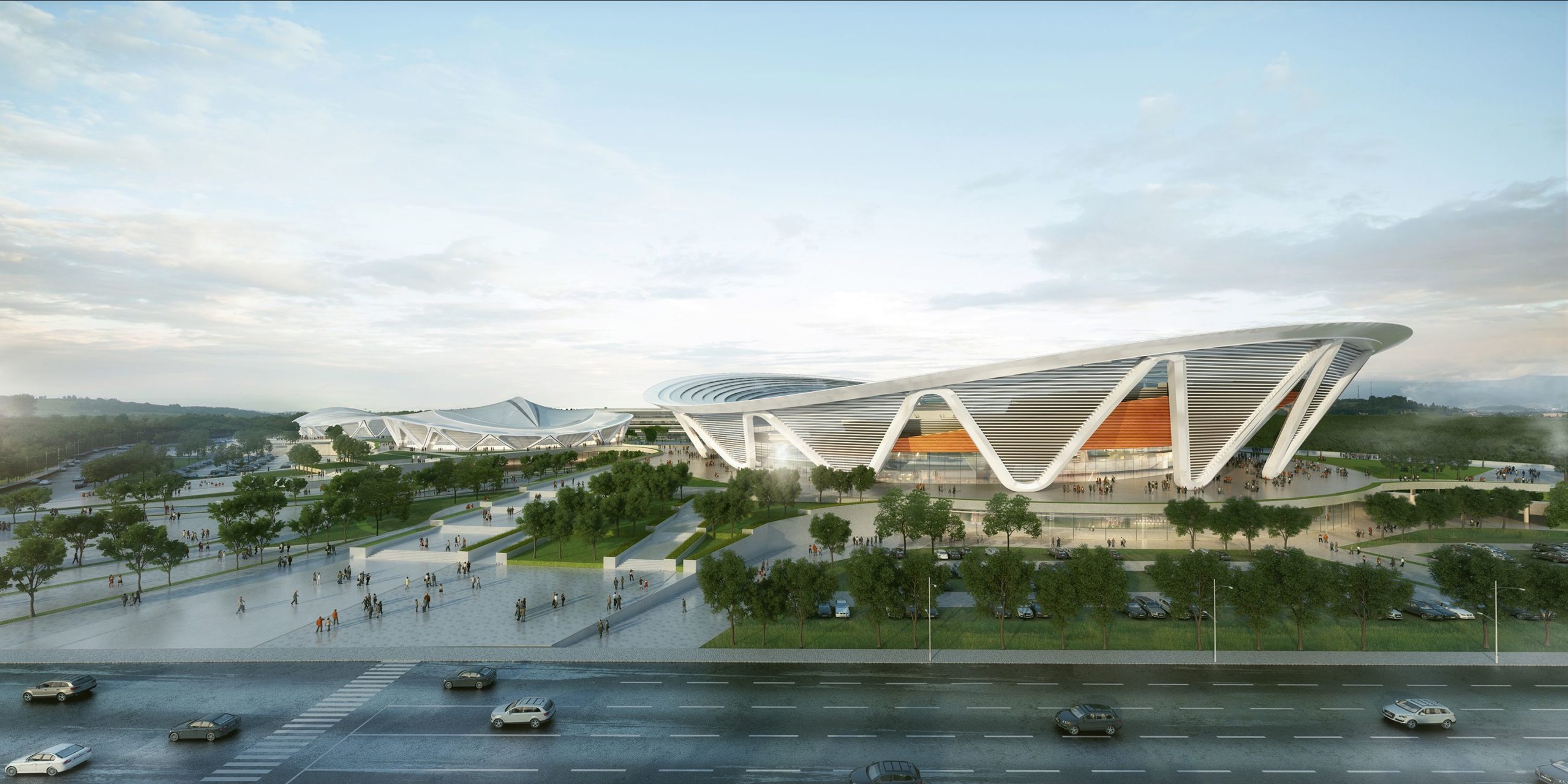 Through the integration of site resources, the combination of sports center functionality requirements with the upper-level planning points creates a ‘three rounds, one band’ formation. ‘Three rounds’, the core group of the masterplan, is formed by uniting the stadium, gymnasium and swimming pool, which strongly reinforces the area as iconic.