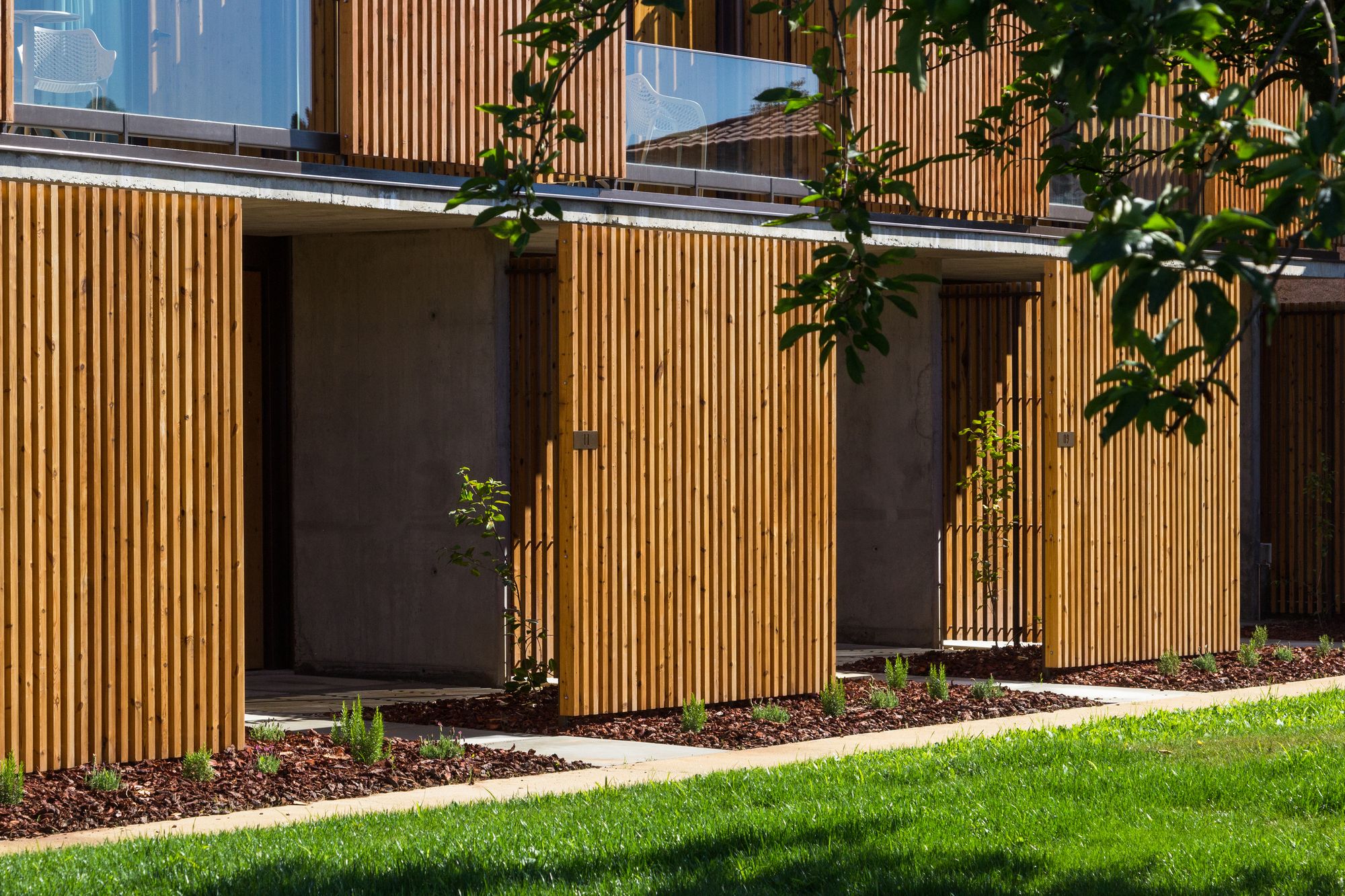 The rooms were distributed among the three newly constructed buildings thus attenuating the impact of the built mass.