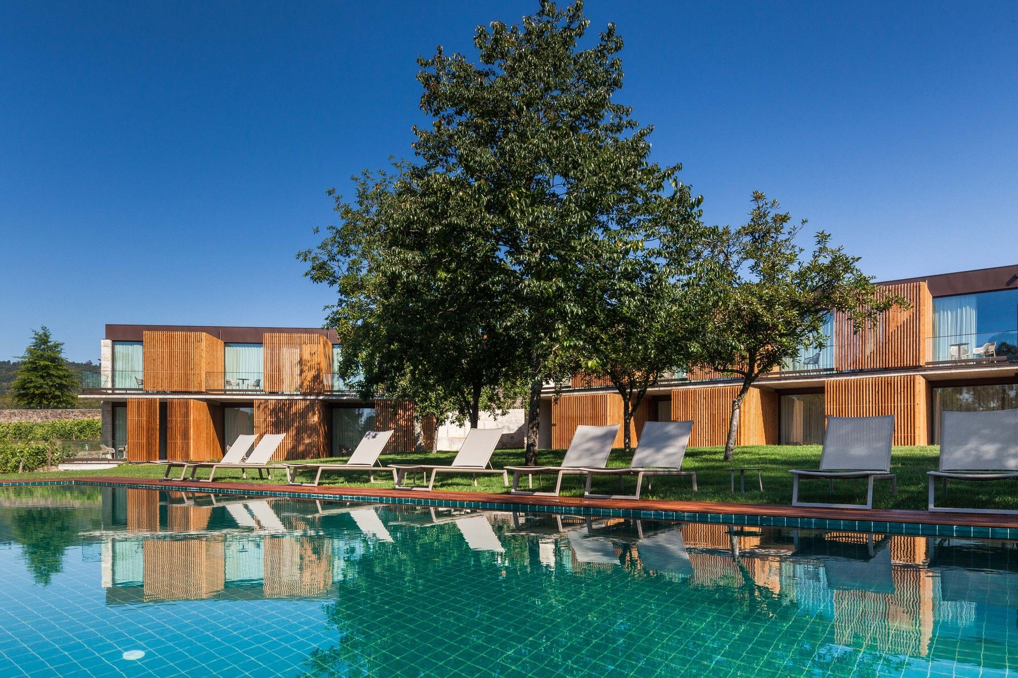 Torre de Gomariz Wine Spa Hotel designed by Paulo Braga + Cristina Amaral, The “Quinta de Gomariz” is an estate in Northern Portugal with documented references dating back to late 13th century. It includes several heritage listed buildings, the most important being the Tower of Gomariz, which is a gothic defensive structure built in the late 15th century. The manor was built at the beginning of the 18th century, adjacent to the tower on the west side. From the 18th-century building, a campaign is also the chapel, the main gate and the walls that enclose the estate.