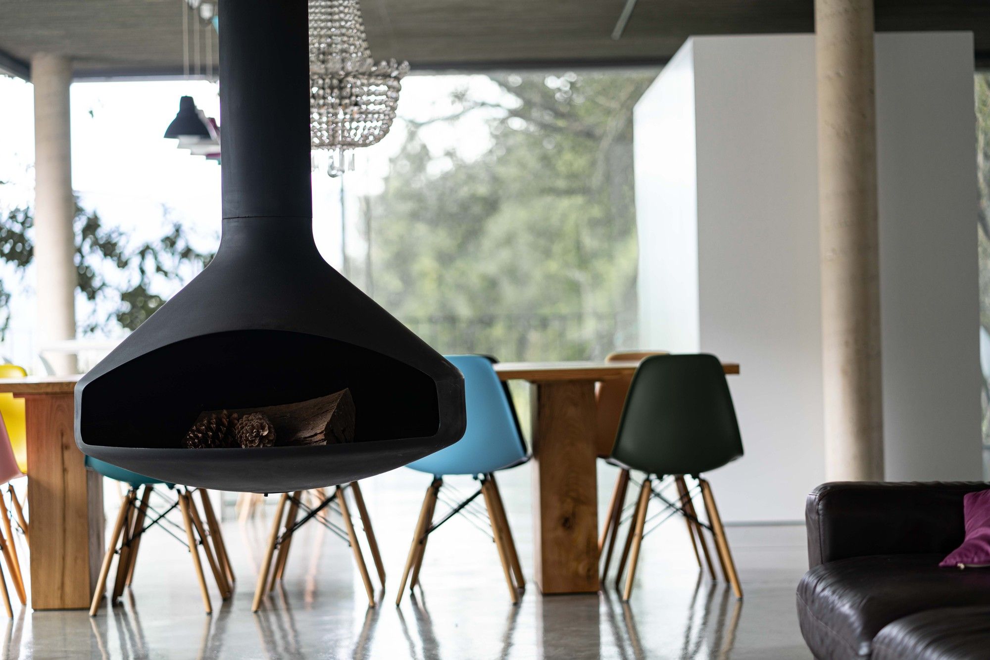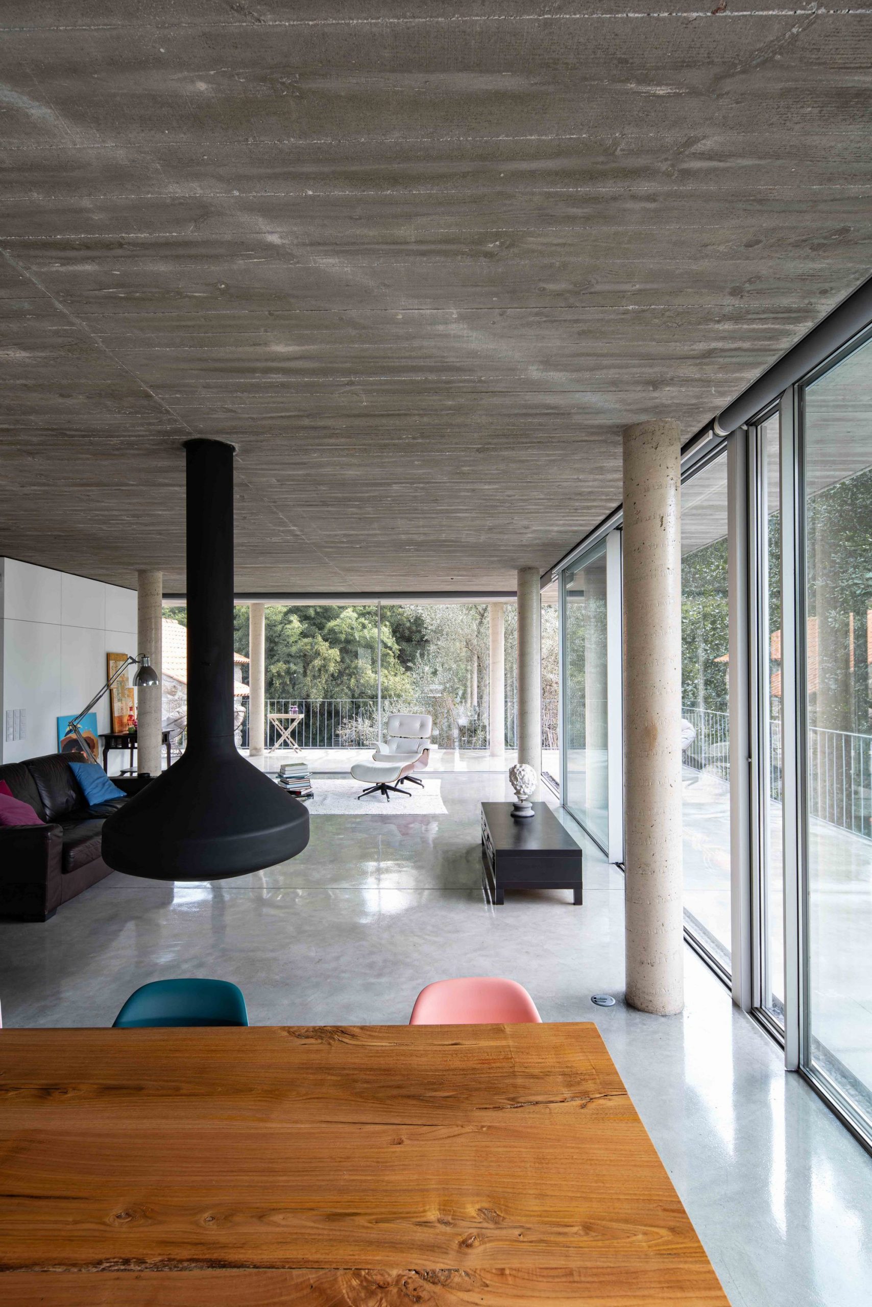 From the inside that connection is obvious, the exterior walls are all glass and it’s the furniture that defines the living spaces among an open floor plan, it’s always possible to see through the different spaces, the vegetation outside.