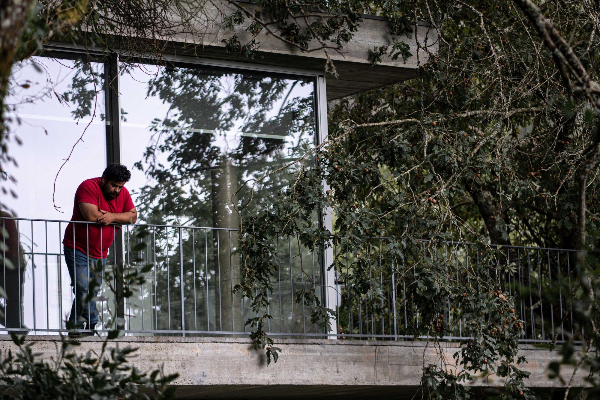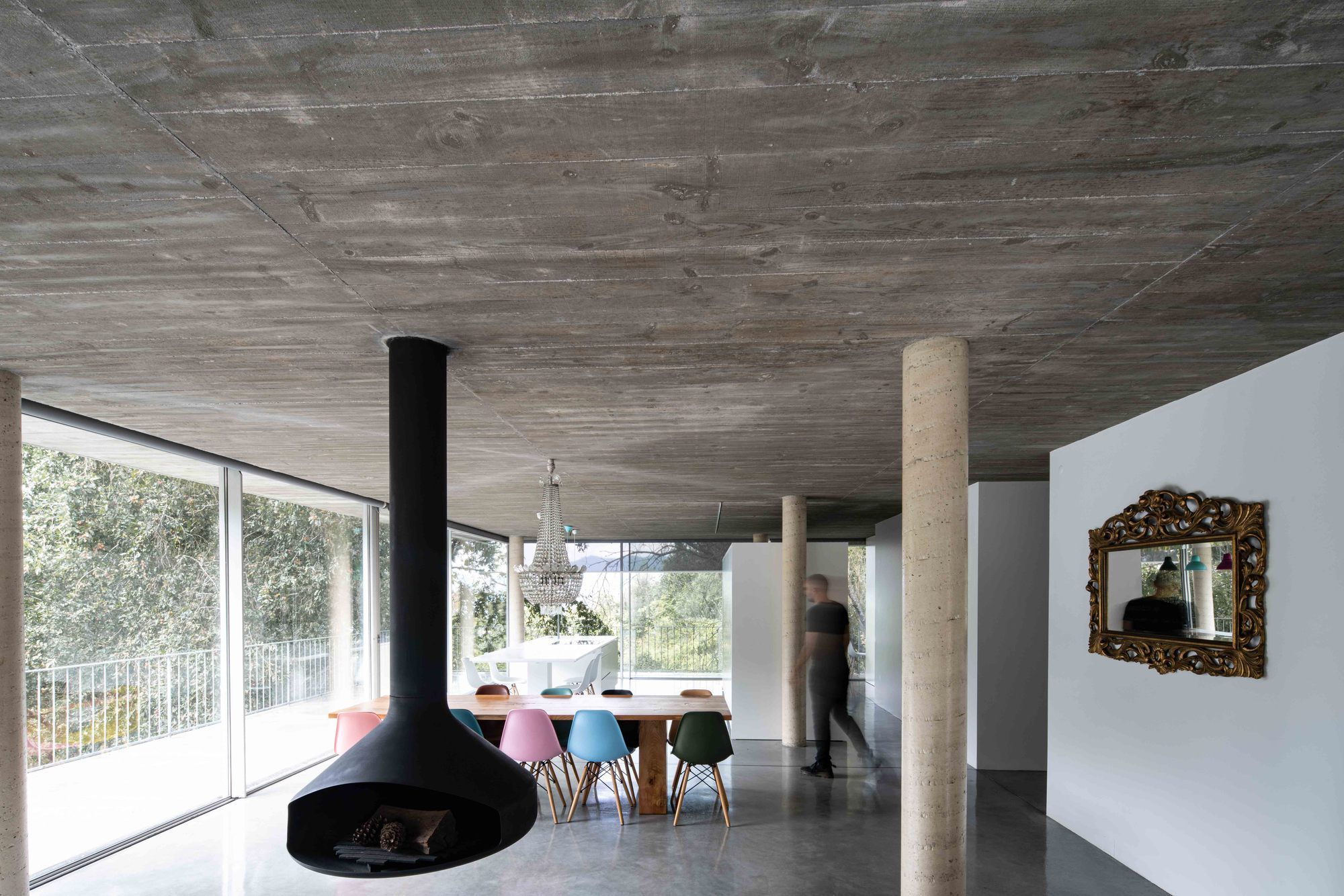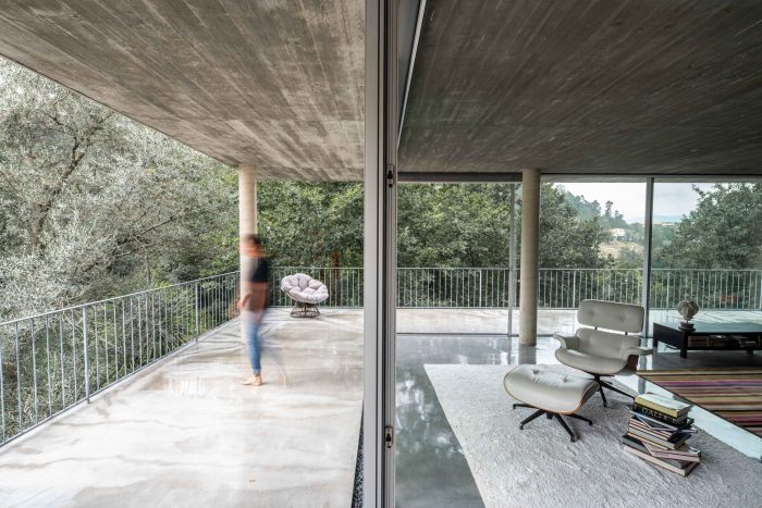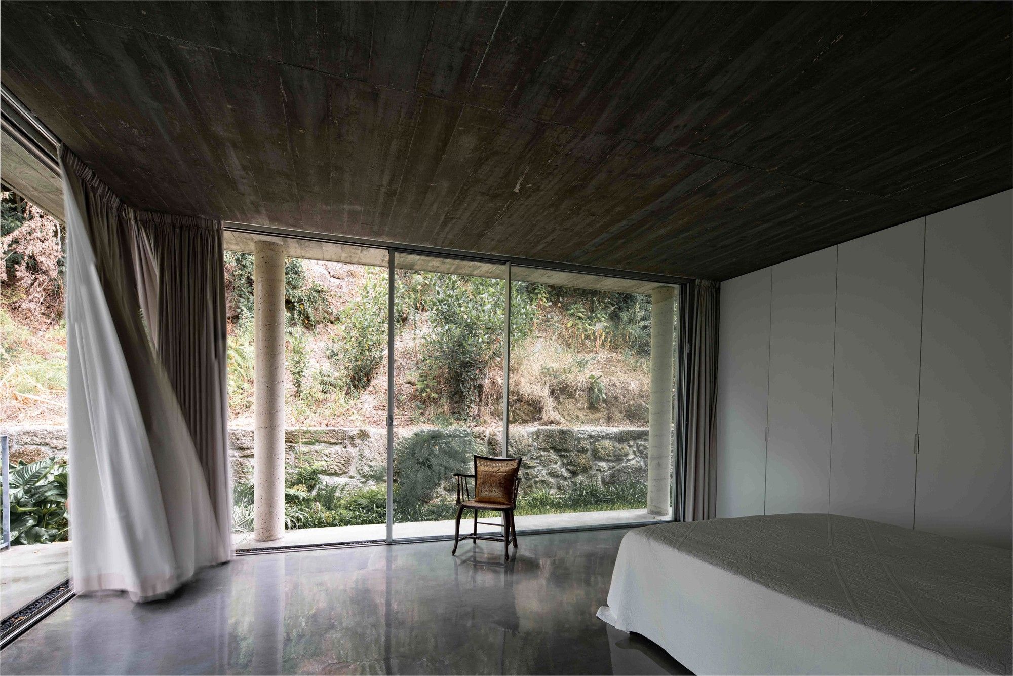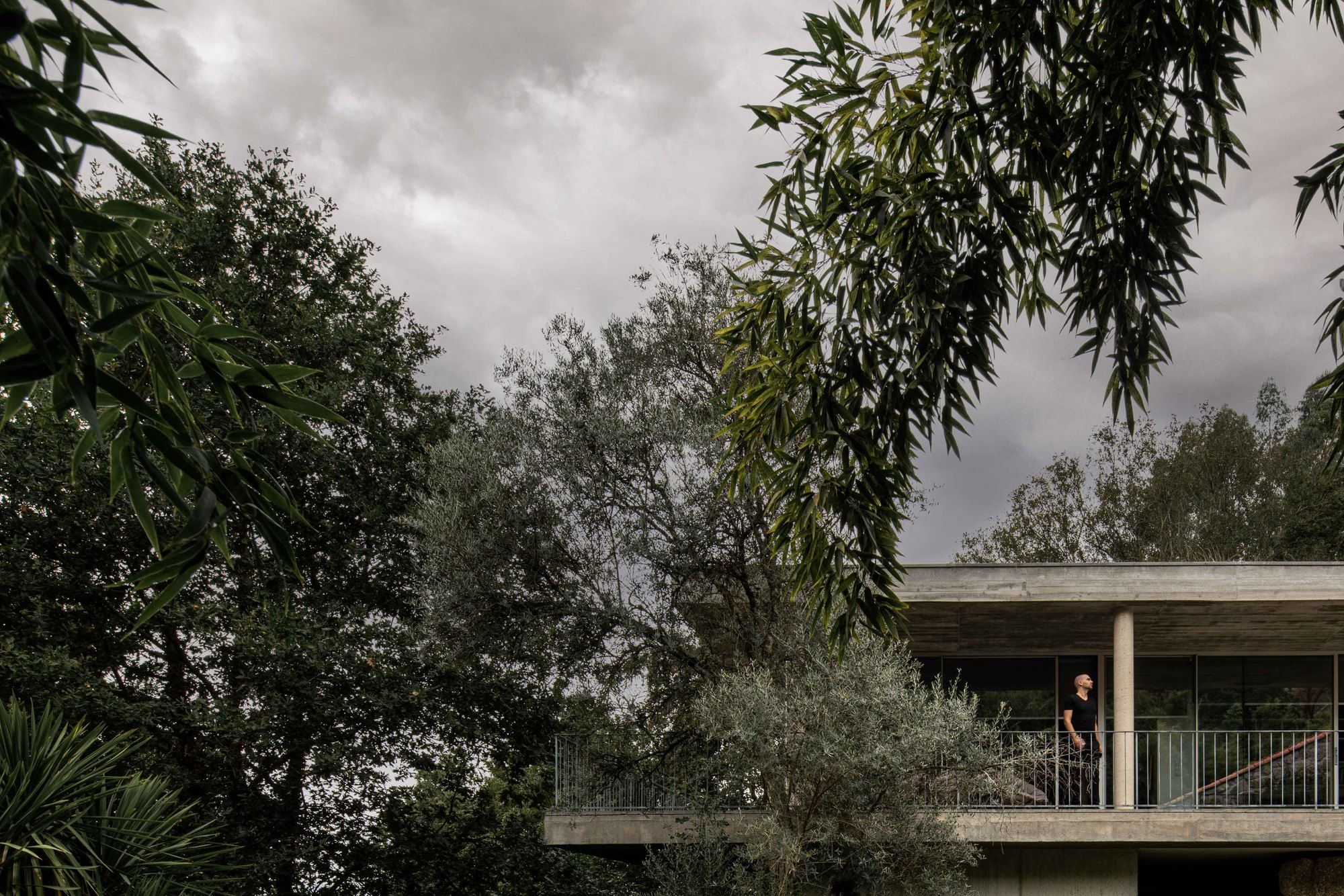 Located in the north of Portugal, where the vegetation is both dense and always shifting this house aims at getting better, more closely connected to nature; in the short period of construction that is already visible, vines start to take control and the higher branches are already touching the glass, the fusion has started.