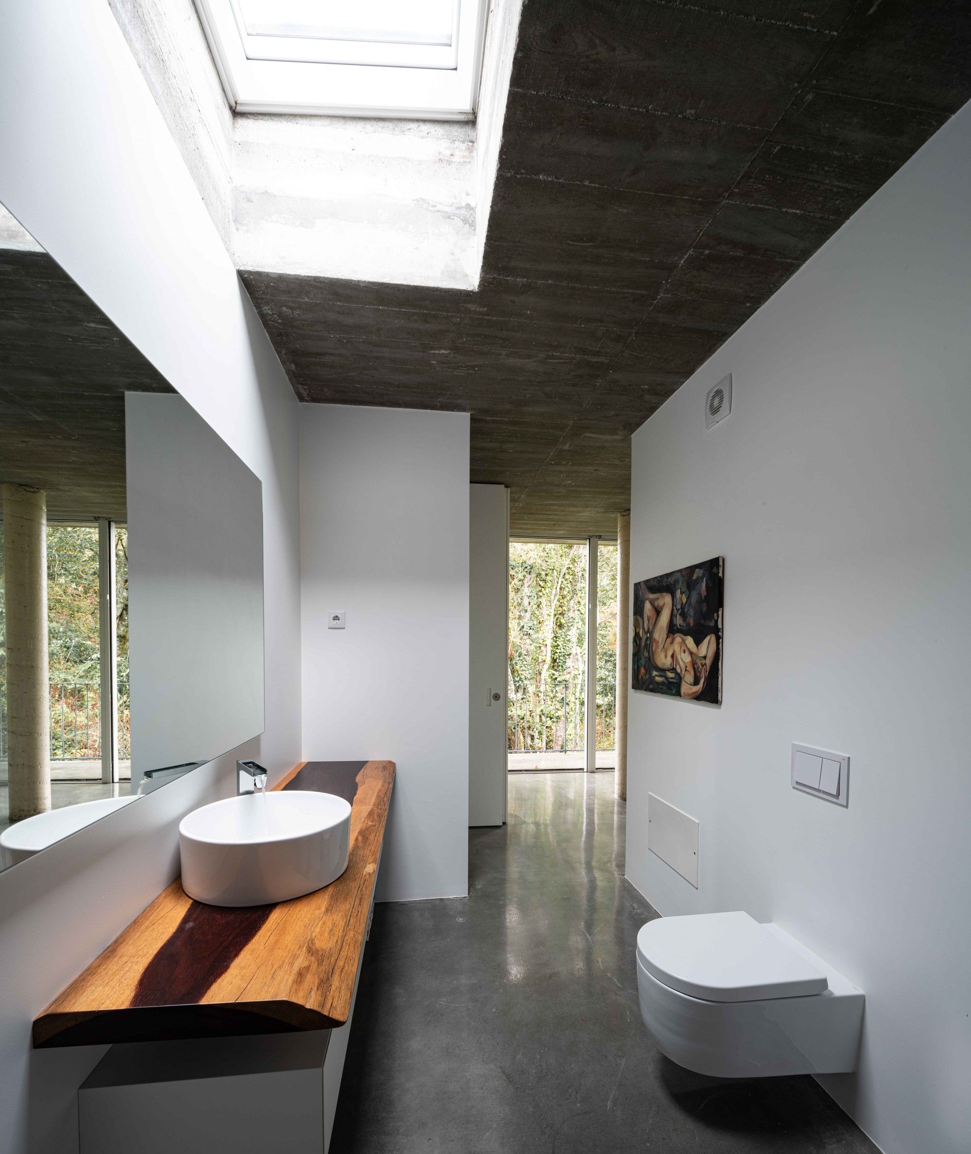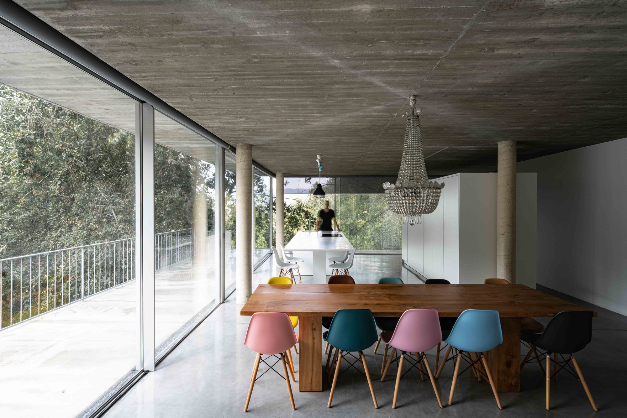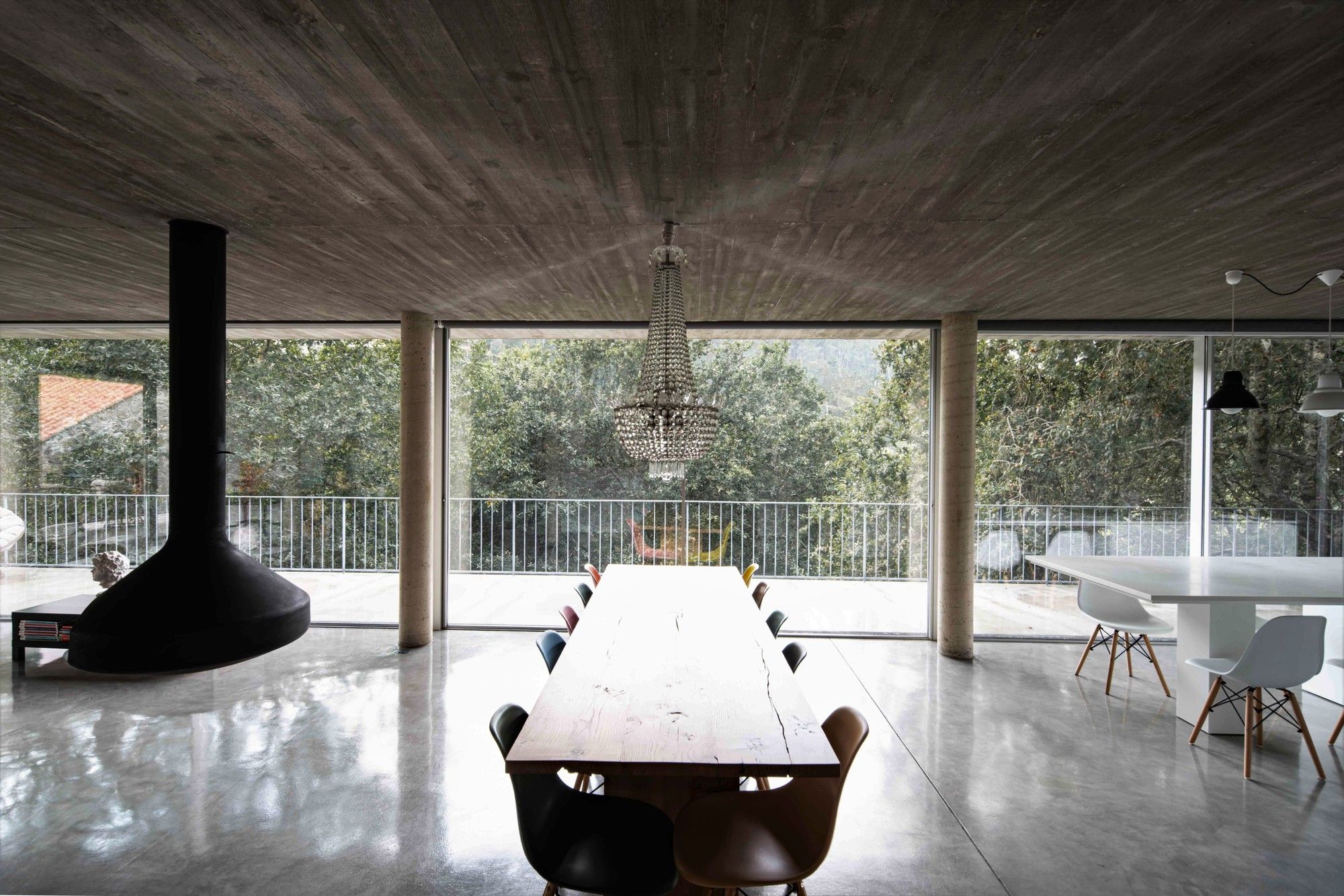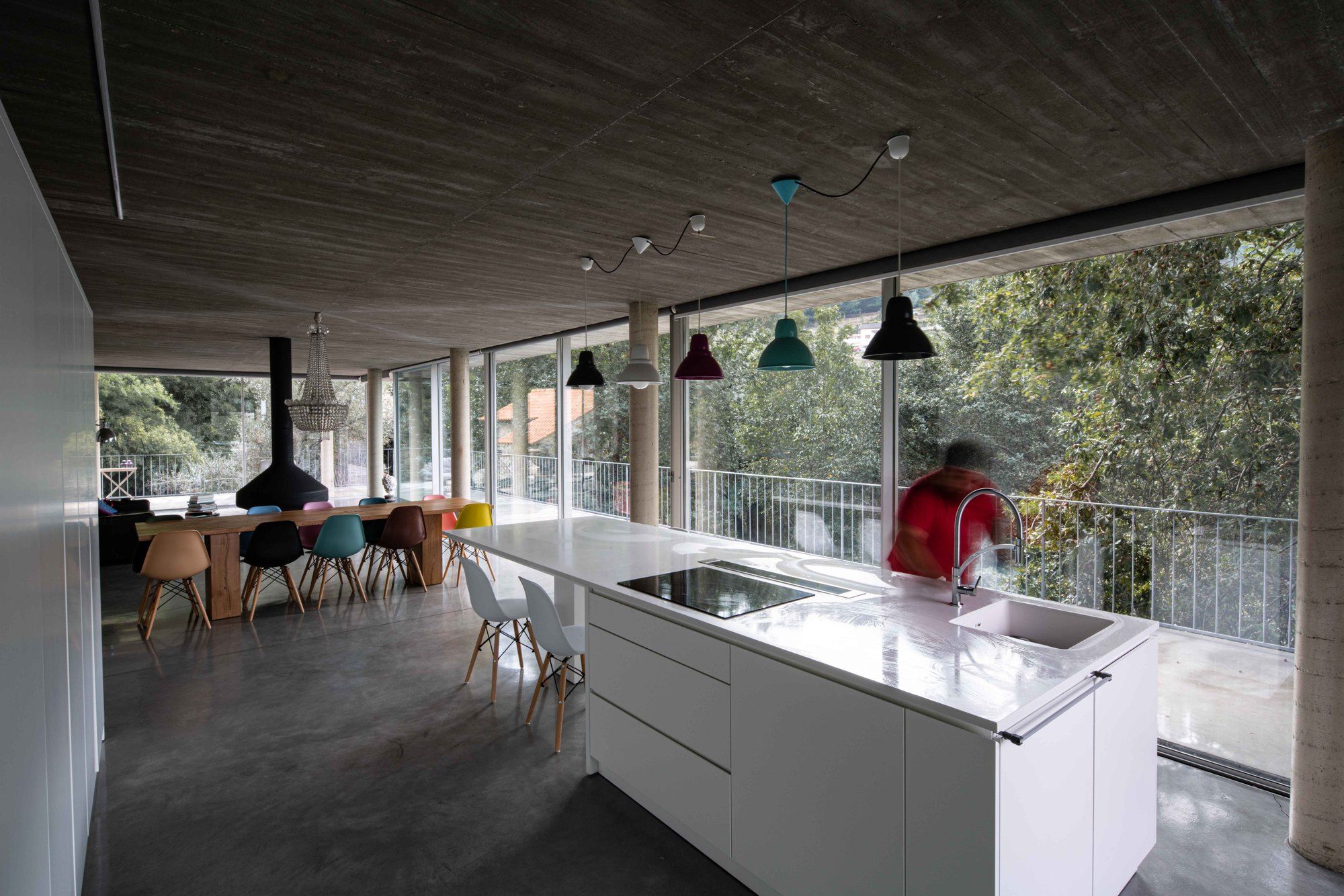 Located in the north of Portugal, where the vegetation is both dense and always shifting this house aims at getting better, more closely connected to nature; in the short period of construction that is already visible, vines start to take control and the higher branches are already touching the glass, the fusion has started.