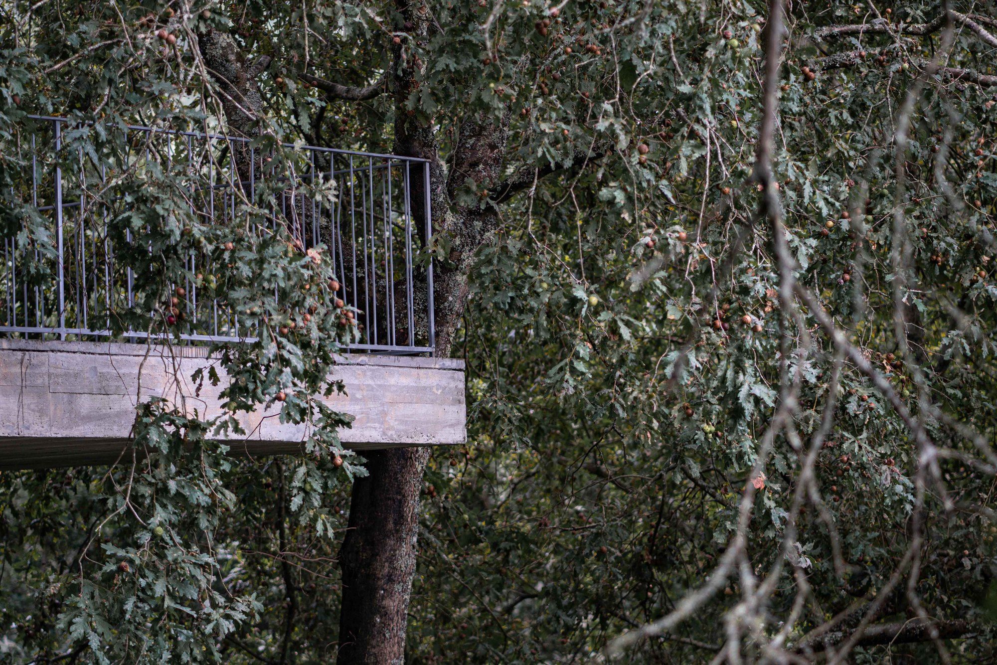 This house was designed around the premise that, in such a special place, architecture couldn’t ever compete or obstruct the nature around it. In order to fulfill that goal, the building was placed to be as close as possible to the century-old oaks and chestnuts without ever touching them.