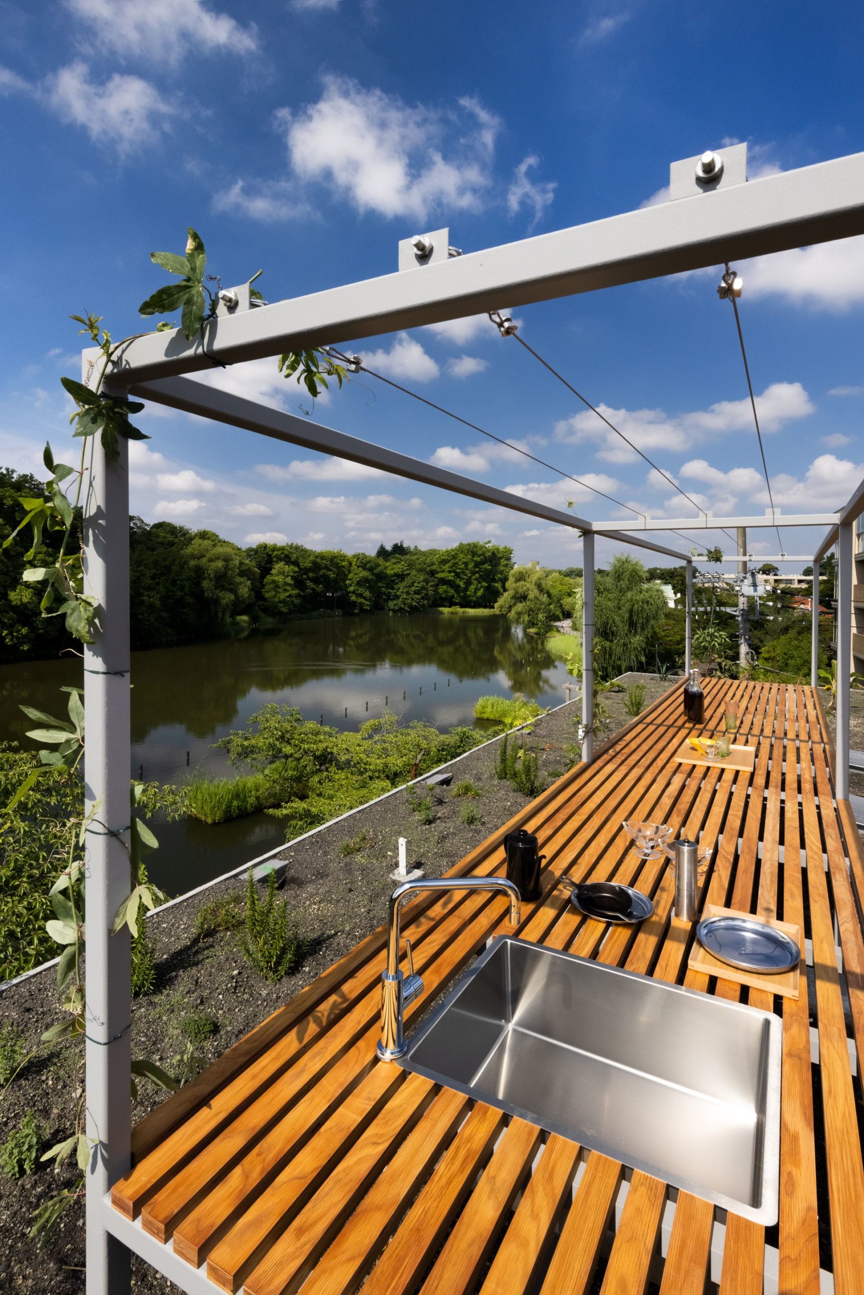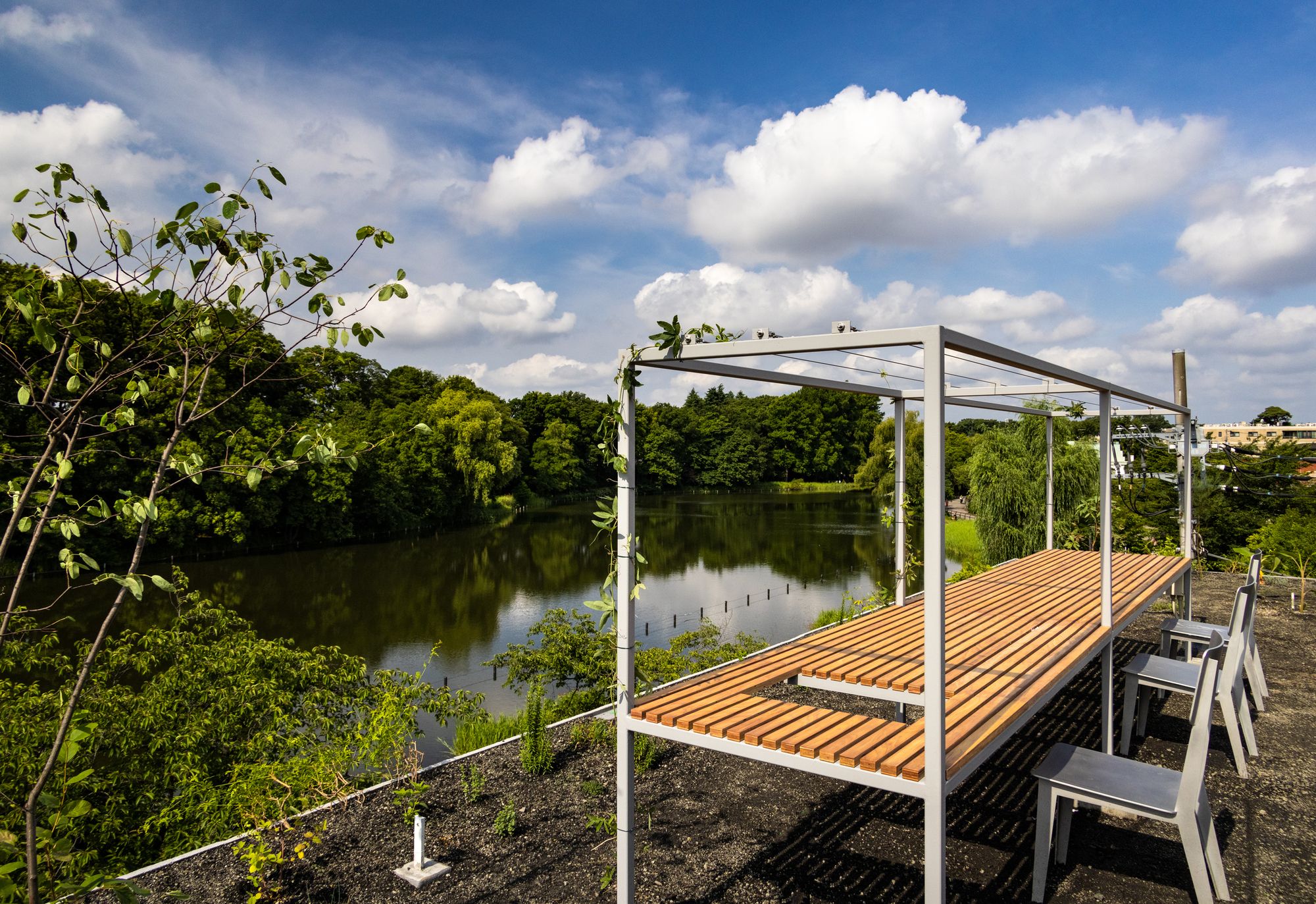 The thickness of the soil was plotted as deep as possible so that the layered garden would be a small forest hosting a mixture of ground cover plants, shrubs, and small trees. This approach goes against modern rooftop greening, which pursues thinner soli. By opening the garden to other available life forms, providing them with a place to inhabit, and co-creating the community, the “garden” becomes an “environment.”