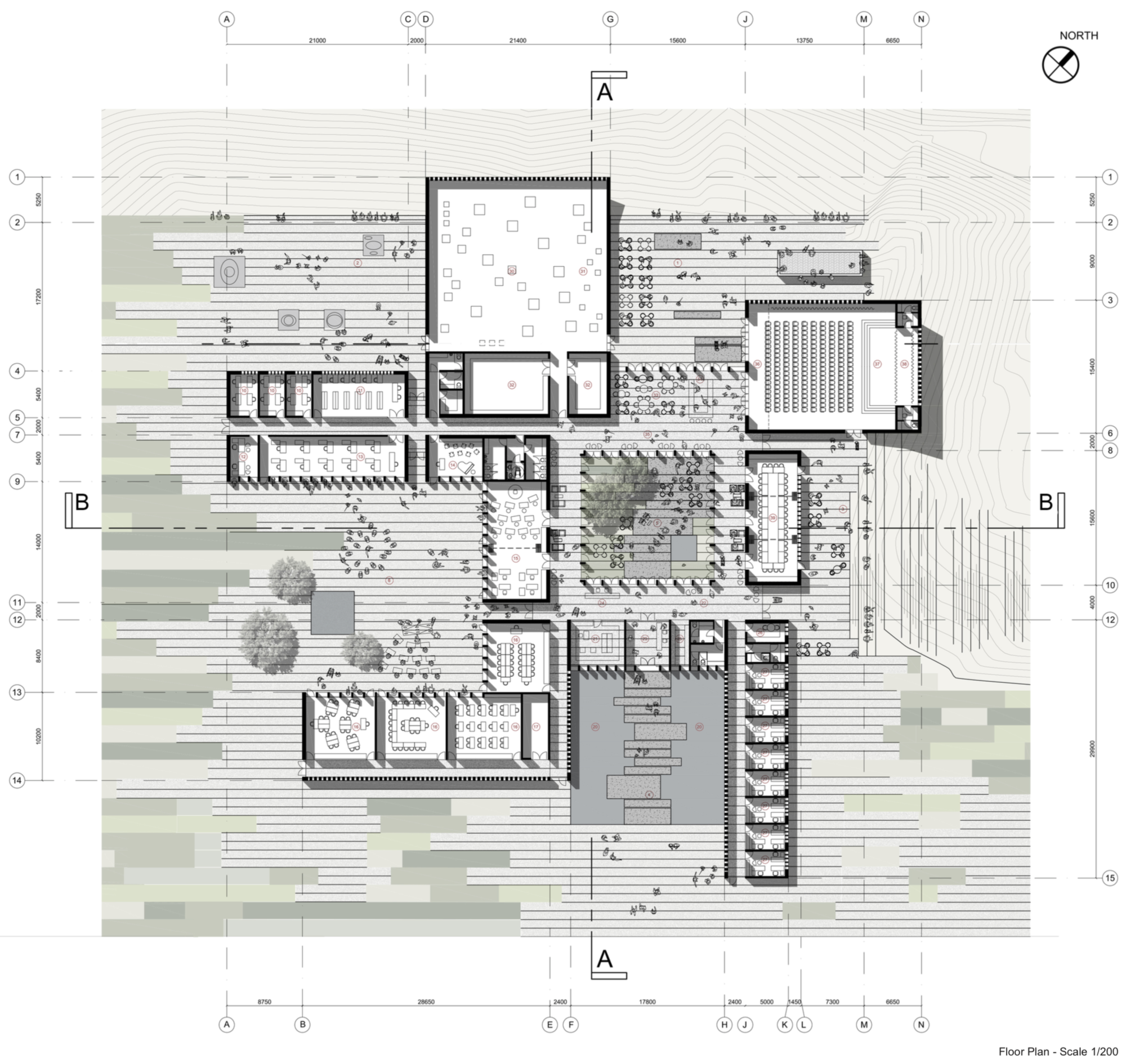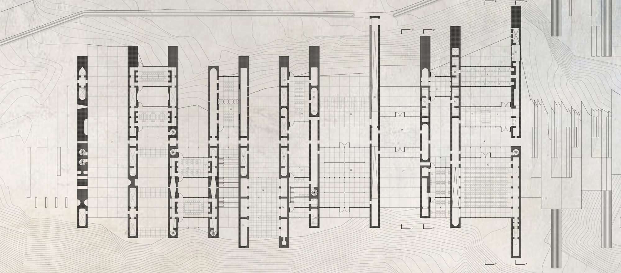 As the competition scheme which won, this project was favoured due to its focus on “the balance on five critical counterpoints”, which include functionality, spontineity, atmosphere, architectural poetics. The construction, being “crude”, is juxtaposed with the affore mentioned , through use of concrete and glazing. The structure is a continuous walk from one end to another with multiple viewpoints of the landscape aswell as the internal amphitheatre.