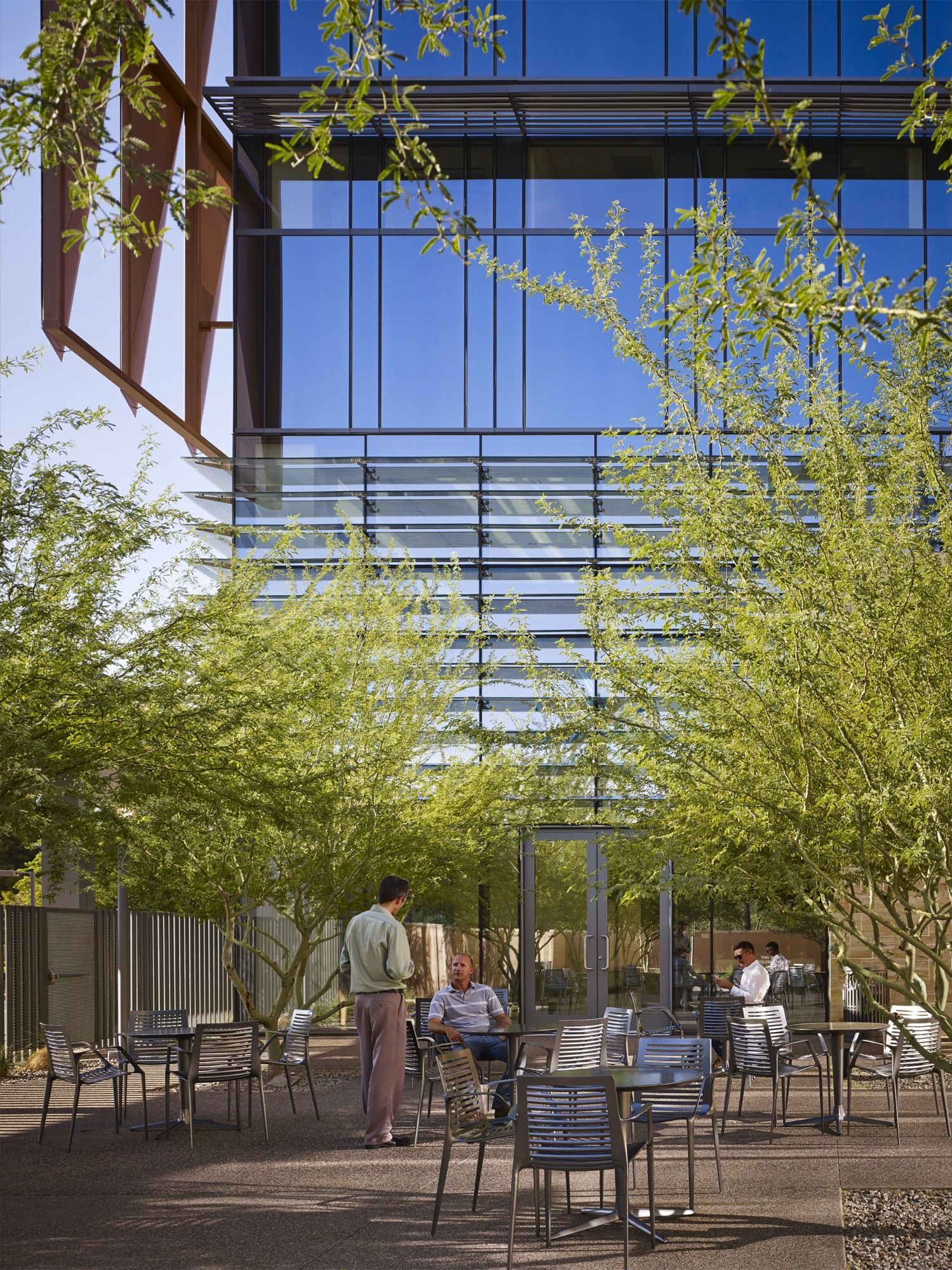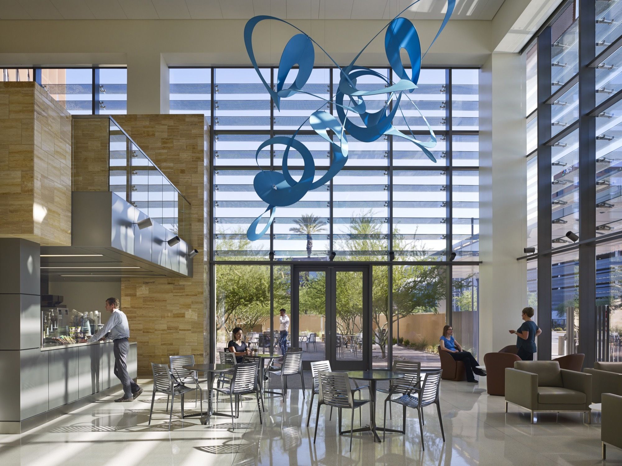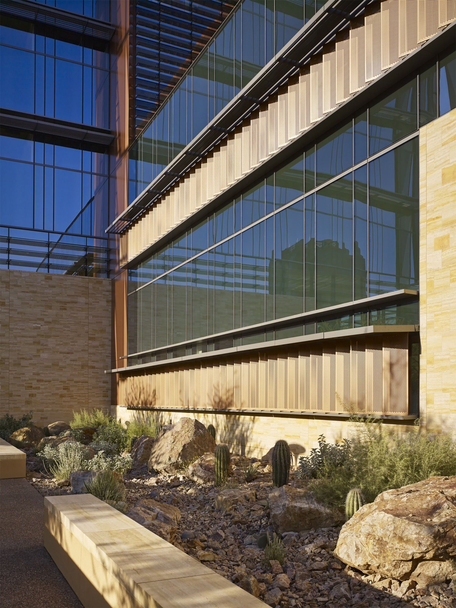 A healing garden is located in the Arizona cancer center adjacent to the main entrance of the building and visible from the main lobby. The two organizations are working together to recruit cancer specialists, as well as cancer researchers to support clinical trials. As part of the partnership, all inpatient cancer care is being handled at St. Joseph’s Hospital and Medical Center, and the outpatient treatments are offered at the new cancer facility. The project is registered with the certification goal of LEED Gold®.