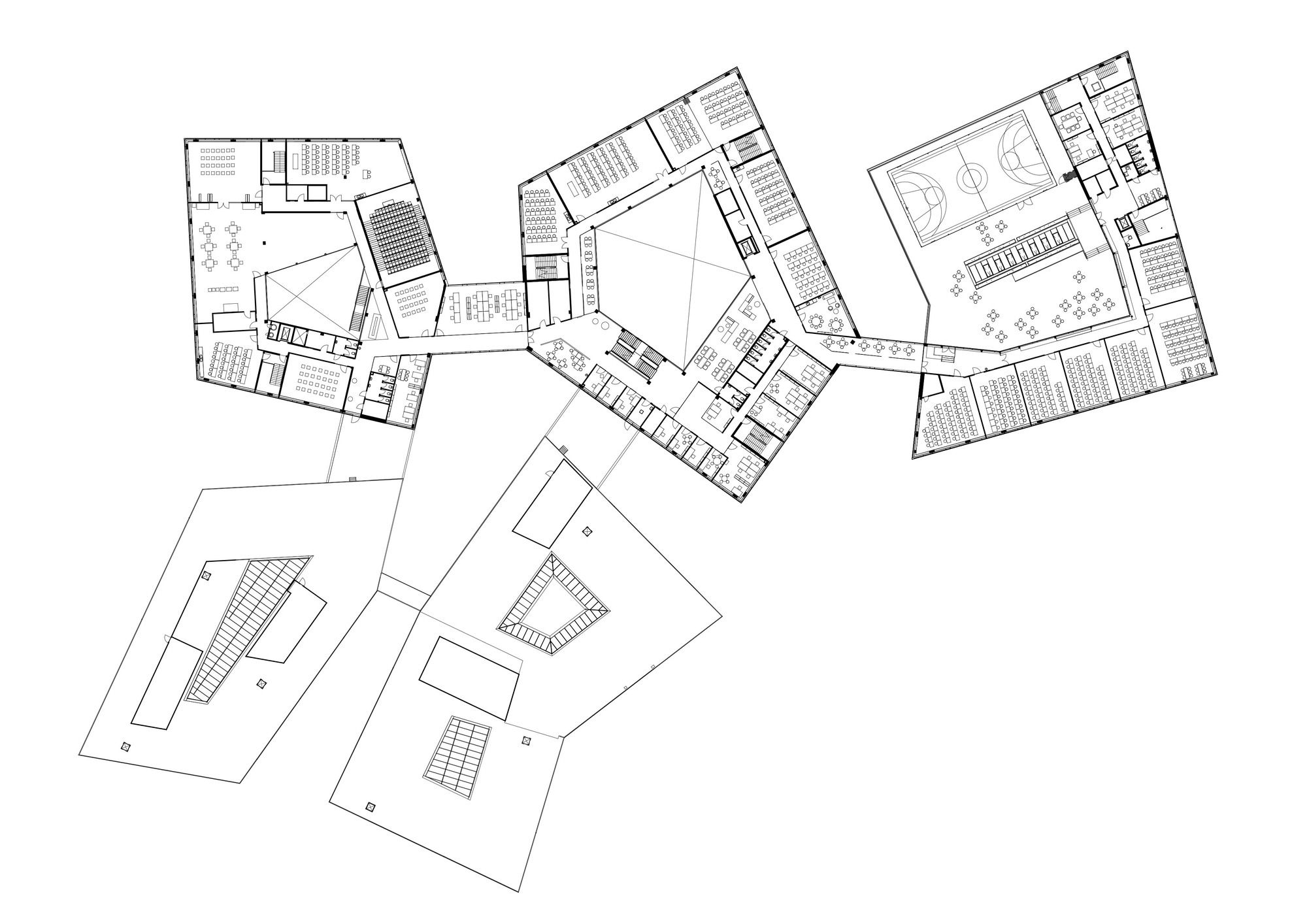 The Learning Street is a flat universe, which is varied horizontally with different “settlements”. These settlements both create intimate pockets and open zones. With its passage through Learning Square, Culture House and the Learning Clusters, Learning Street invites you into the adjacent worlds.