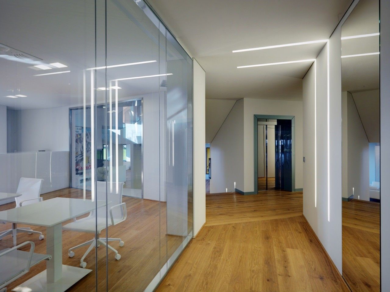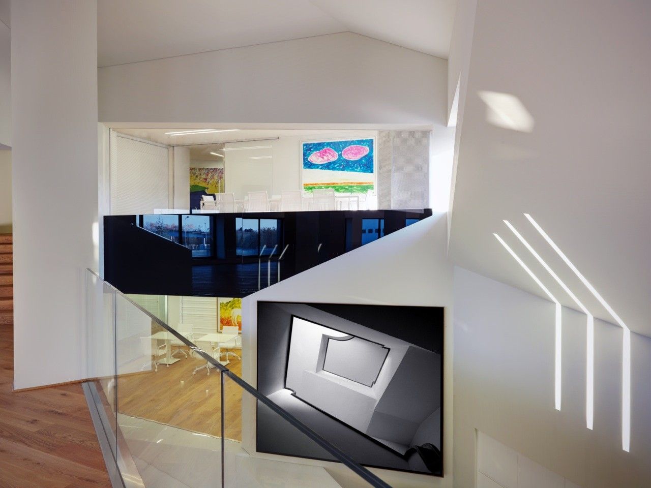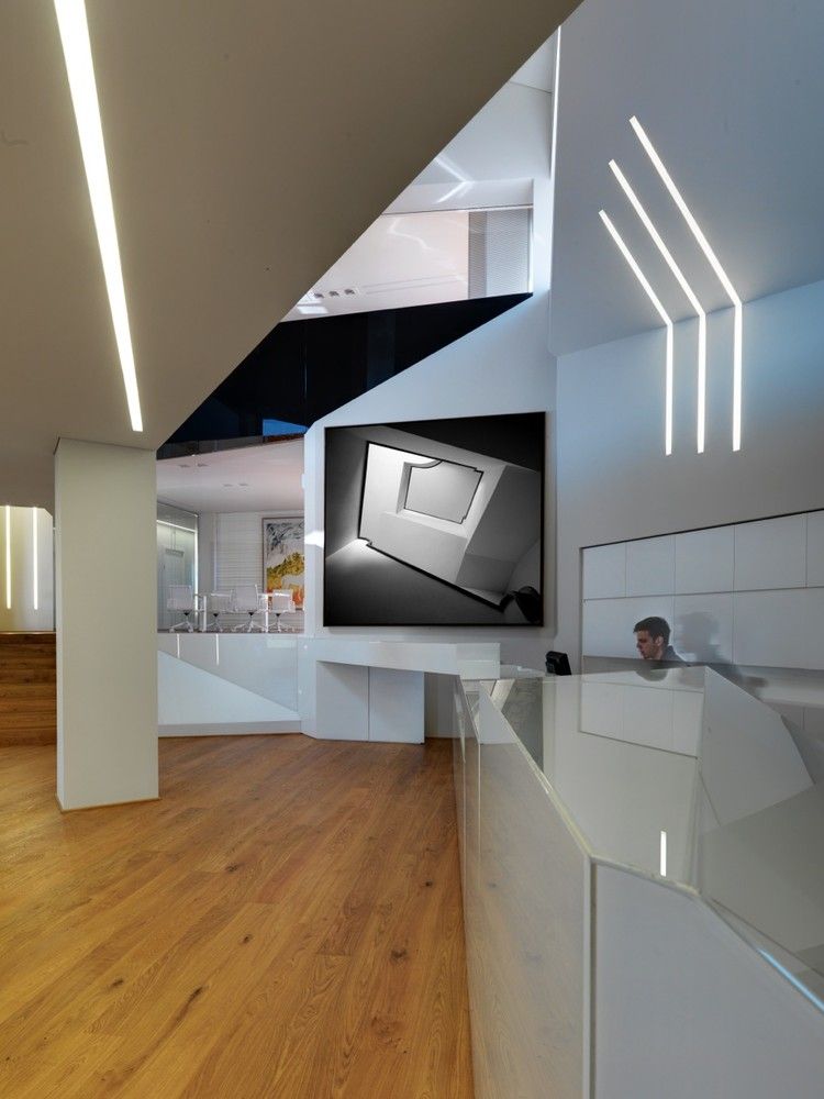 This structure is also a nice example of how to integrate sustainable technologies and environmental building systems within architecture without tarnishing the integrity of the initial design. The building runs along the east-west axis, allowing the most natural light to enter the building during the day, and enhancing the daylight by painting the interior white. Mixed among the glass exterior panels are voltaic panels to harness energy for the occupants to use during the day.