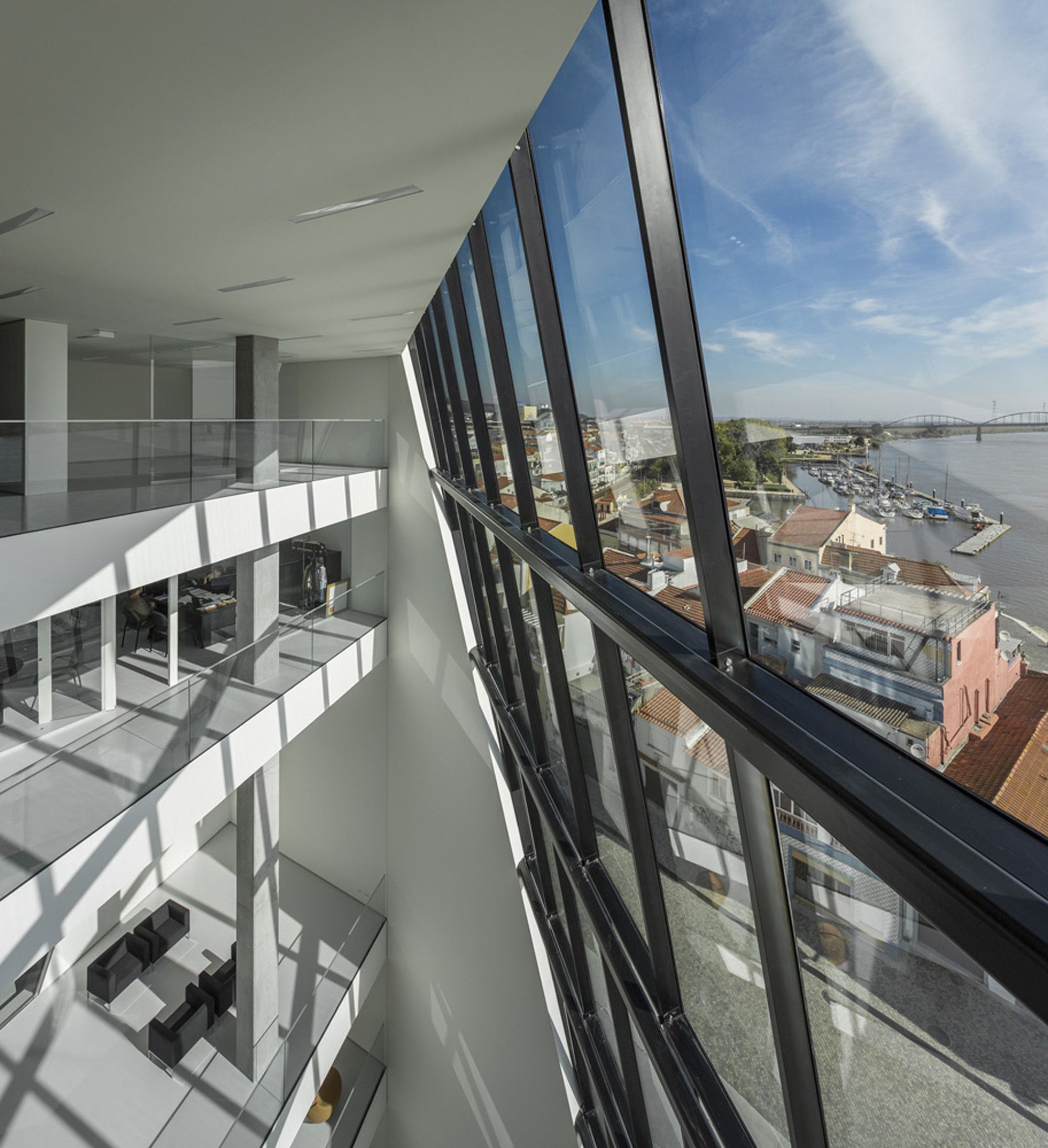 We consider that the reading of the surrounding landscape through surfaces of triangular and trapezoidal expression contributes to the development of the “act of observing” the natural and urban landscape that this building enjoys. We think therefore that this set of options contributes to a greater and more effective democratization of space, from the perspective of the availability of this facility to a wide range of users.