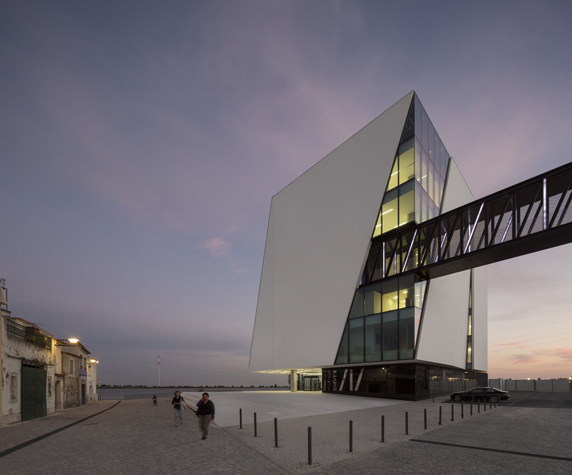 The V.F.Xira Municipal Library is located on the north bank of the Tagus River, on the site formerly occupied by a rice mill, hence its name “Factory of Words”. The volumetric characteristics of the old factory, the proximity of the Tagus River, a broader concept of the functions of a library and finally the desire to build an effectively usable equipment for the local population, were the most crucial concepts in conceiving this library.