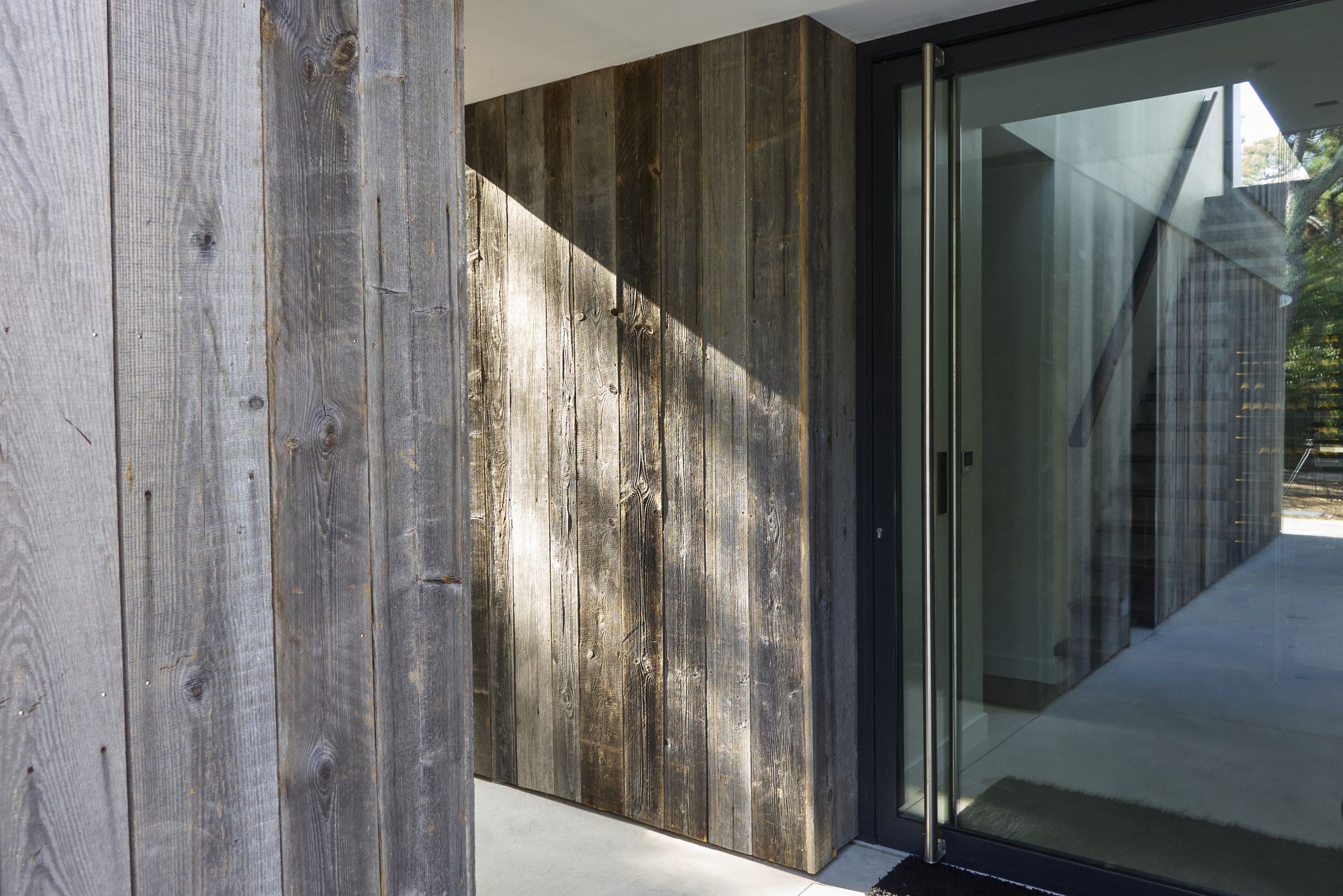 The facade, overlooking the street, is made of wood and concrete opaque volumes, which deteriorates laterally.