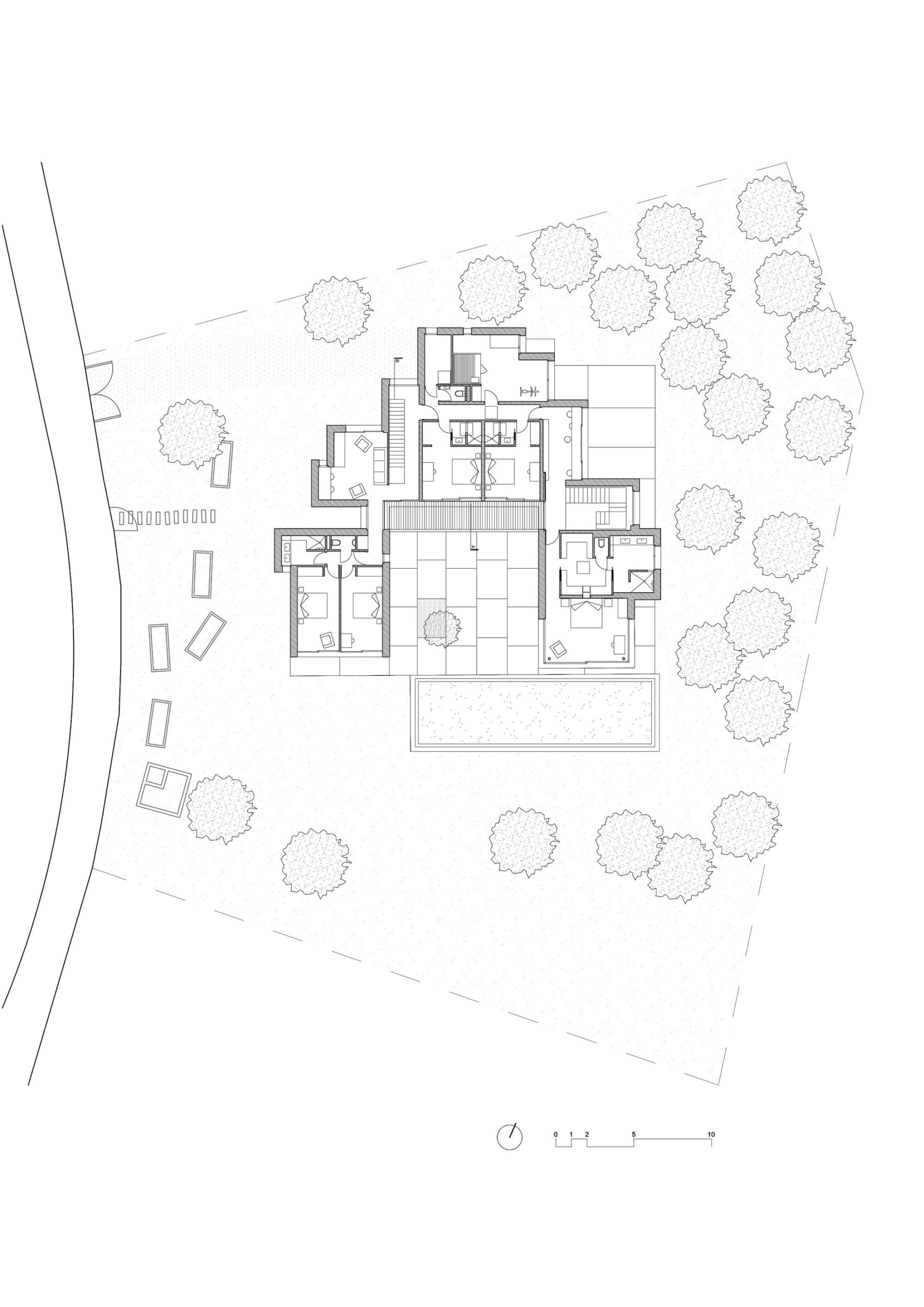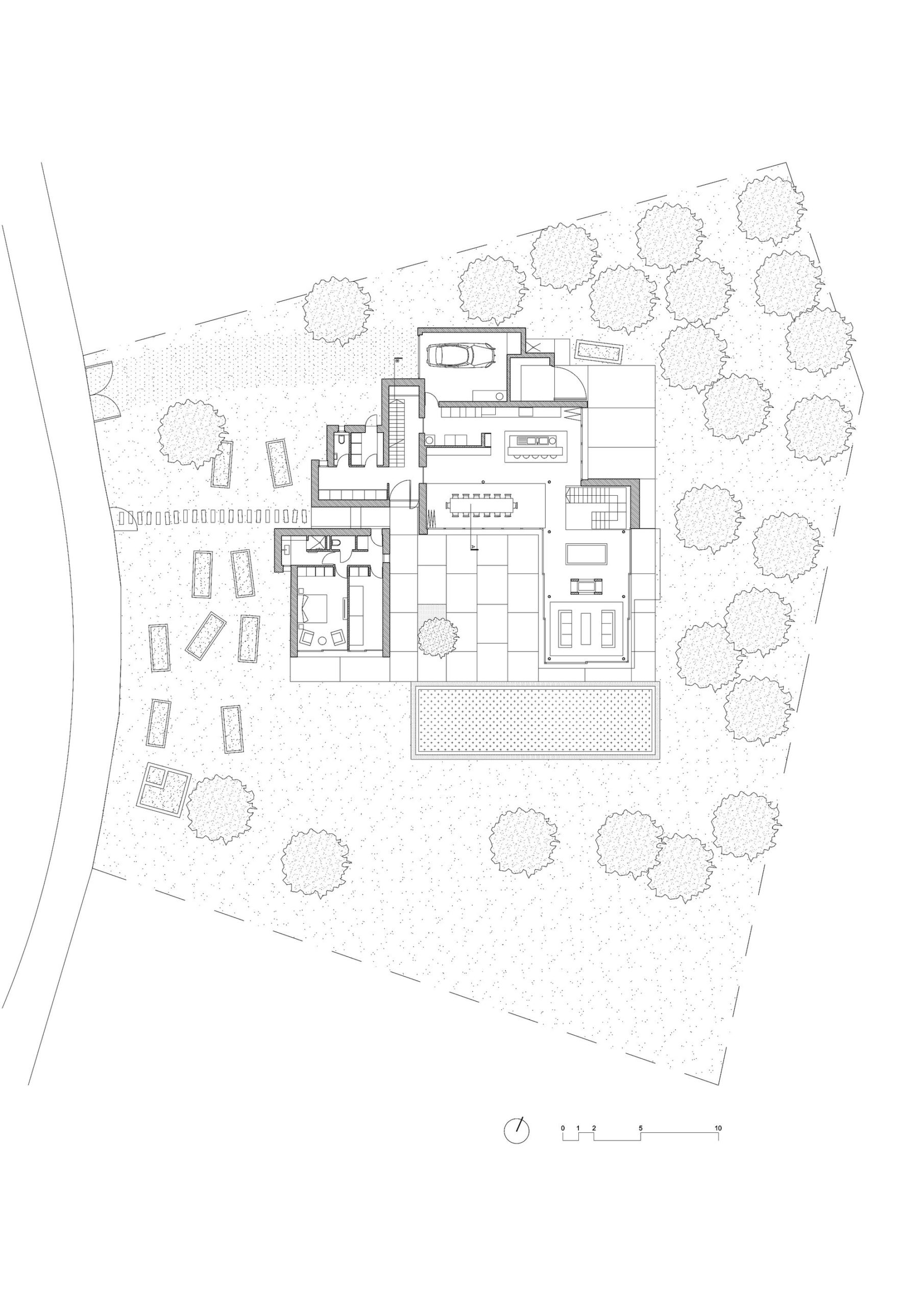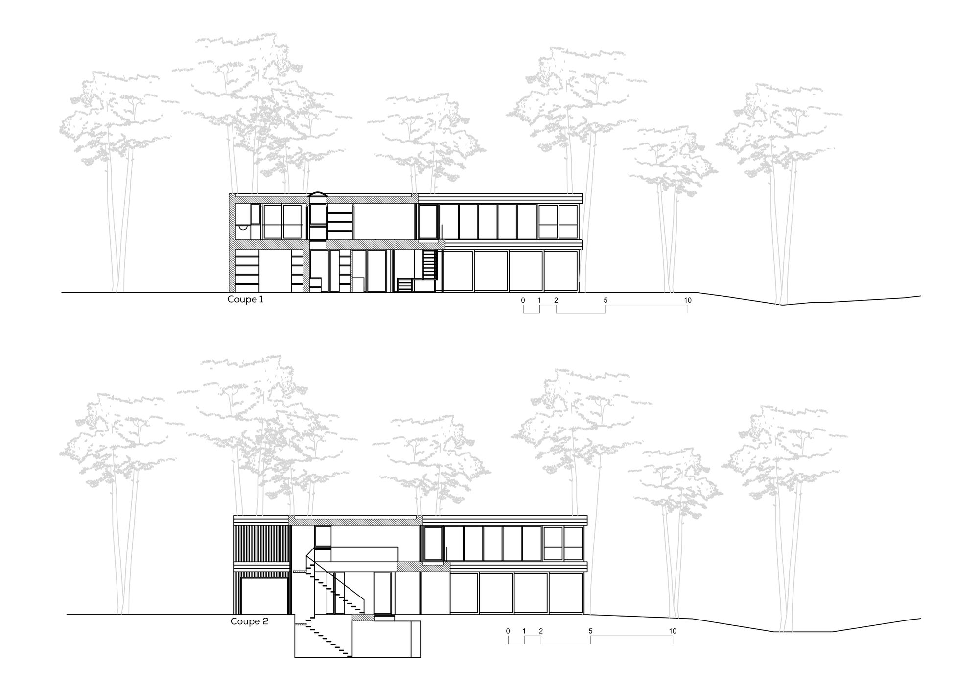 Designed by Hugues Touton & Edouard Touton, With an impressive architectural program, Villa Eiders aim to split the volumes, sheltering the functions of such house to reduce their impact and to organize them around a protected terrace, opening to the south on the swimming pool and on a pine forest.