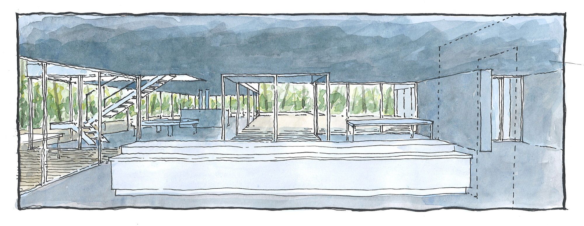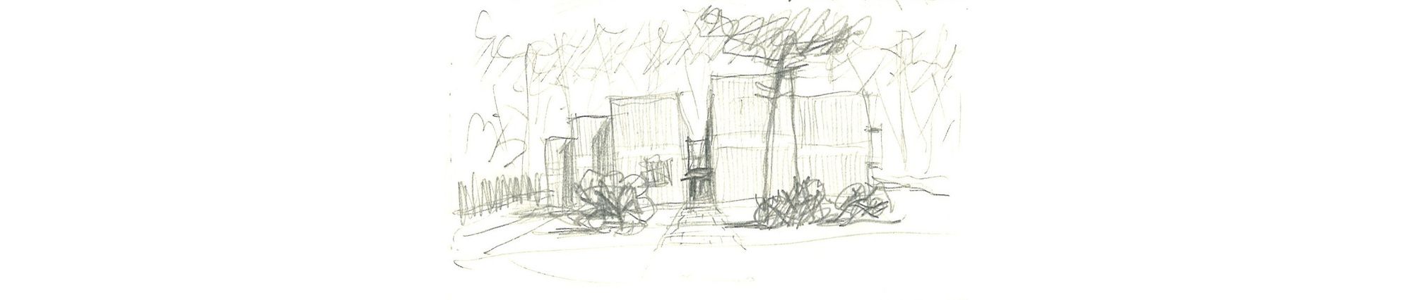 It welcomes the visitor almost at the middle of the space and leads him through a “fault” between closed blocks until the heart of the house, its terrace.