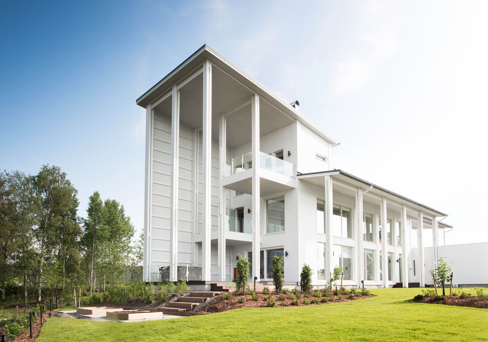 Villa Muurame is a wooden 3-story single-family home by Lake Jyväsjärvi in Jyväskylä, Finland. The spatial elements of the house (approx. 3m wide, 7.8 long and 3.1 high) were pre-fabricated during the winter in the Muurametalot housing factory in Karunki, Finnish Lapland, and the elements were erected in Jyväskylä after the snow had melted.
