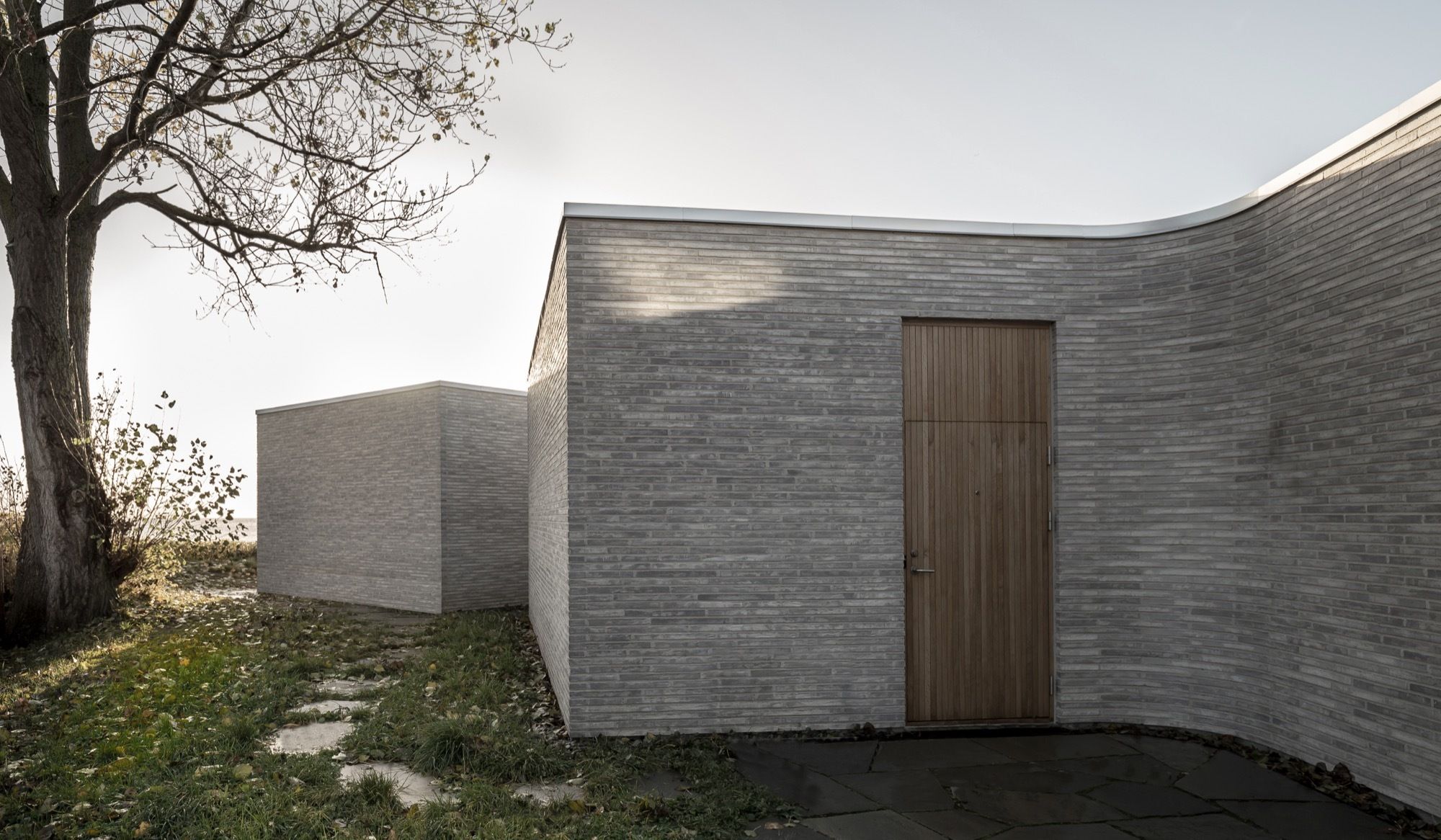 All materials are kept in natural colors. Sand colored Kolumba brick, combined with the robust oak framing the windows, add solidity to the villa, humbly adapting it to the exposed site.