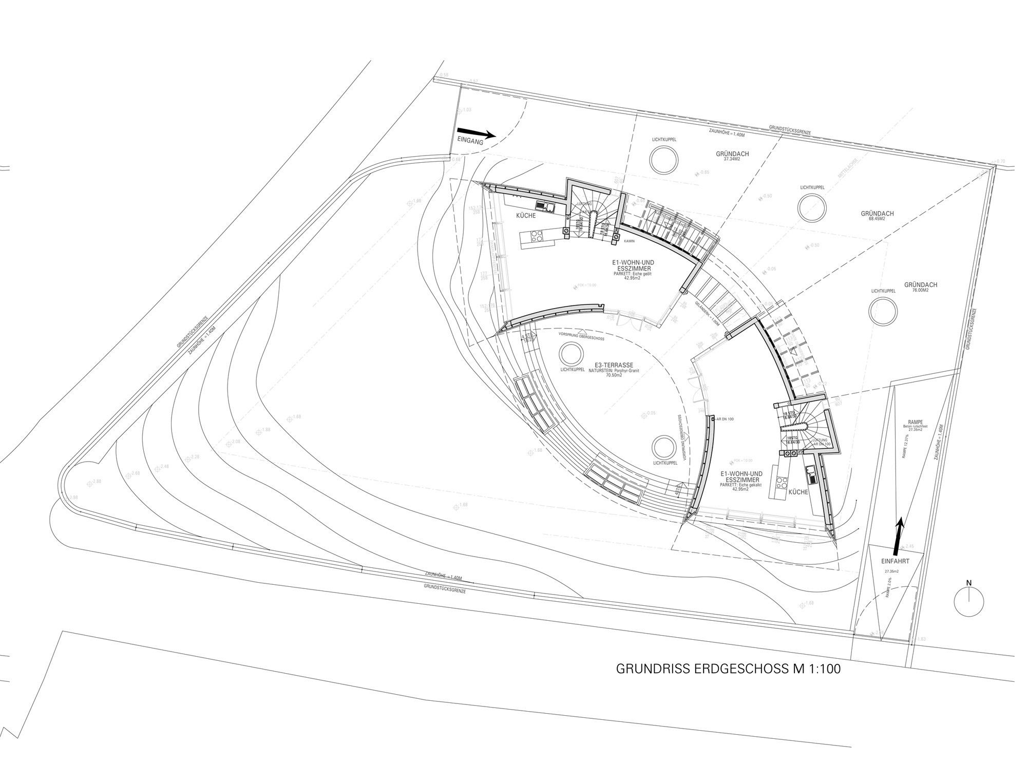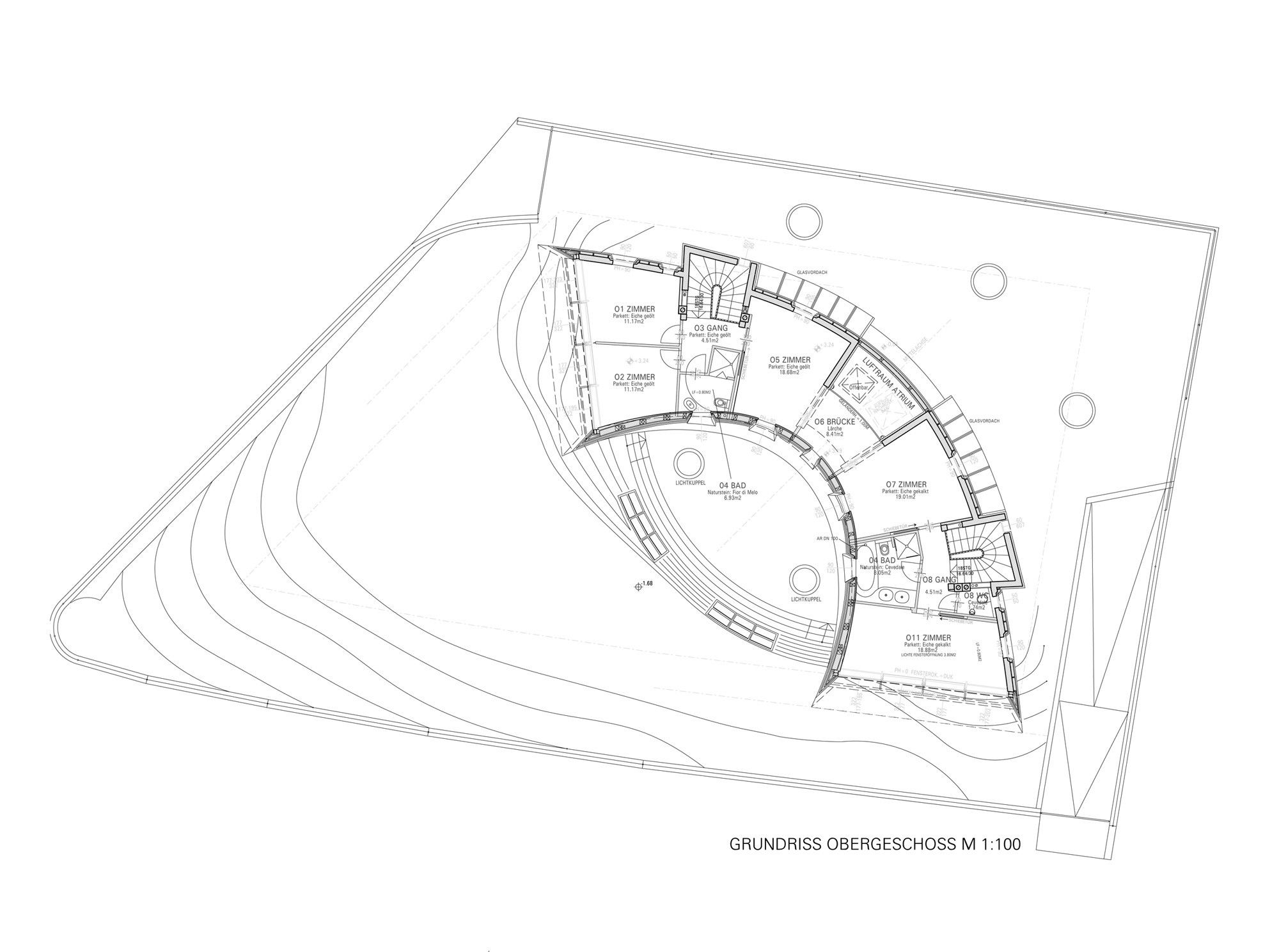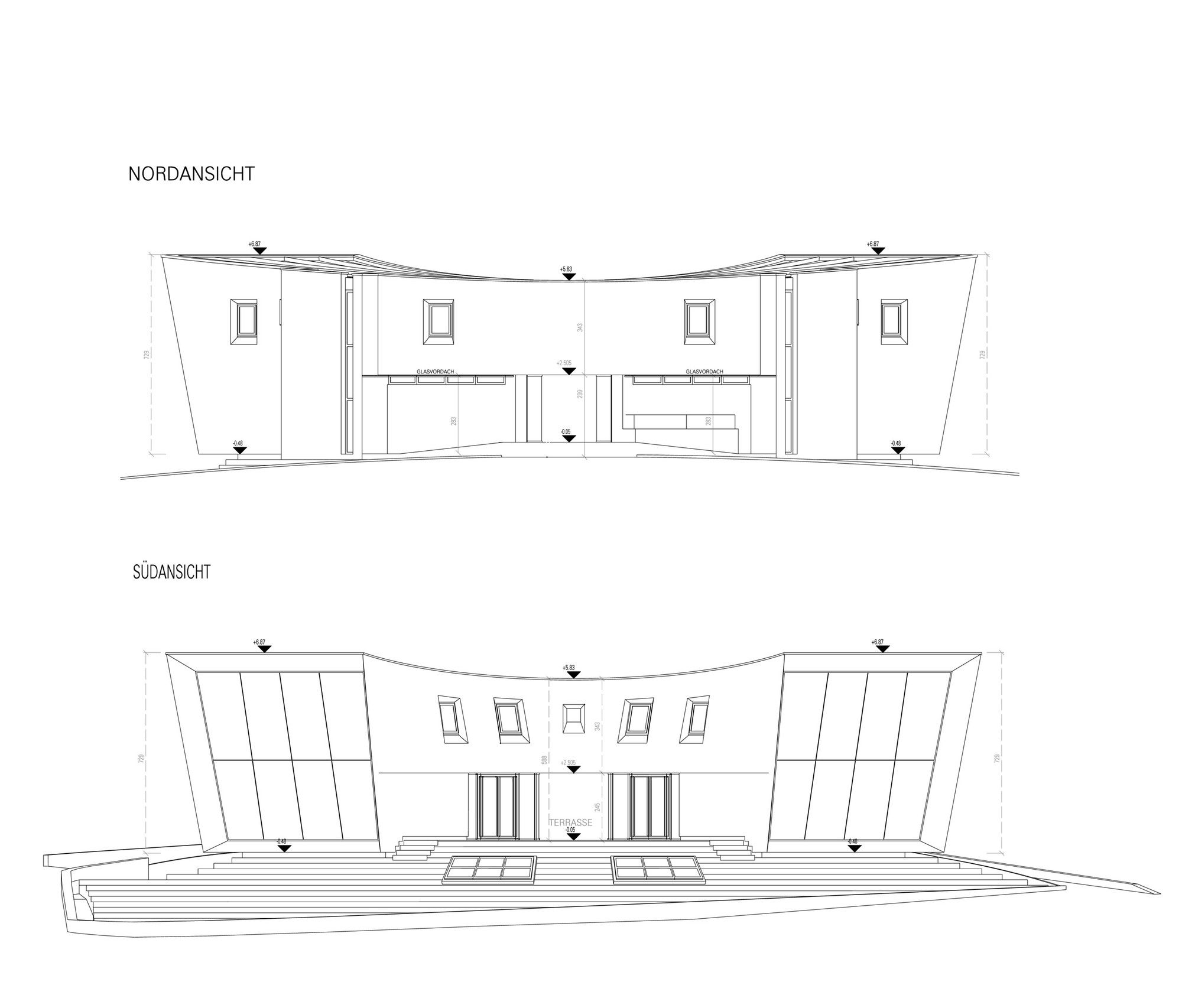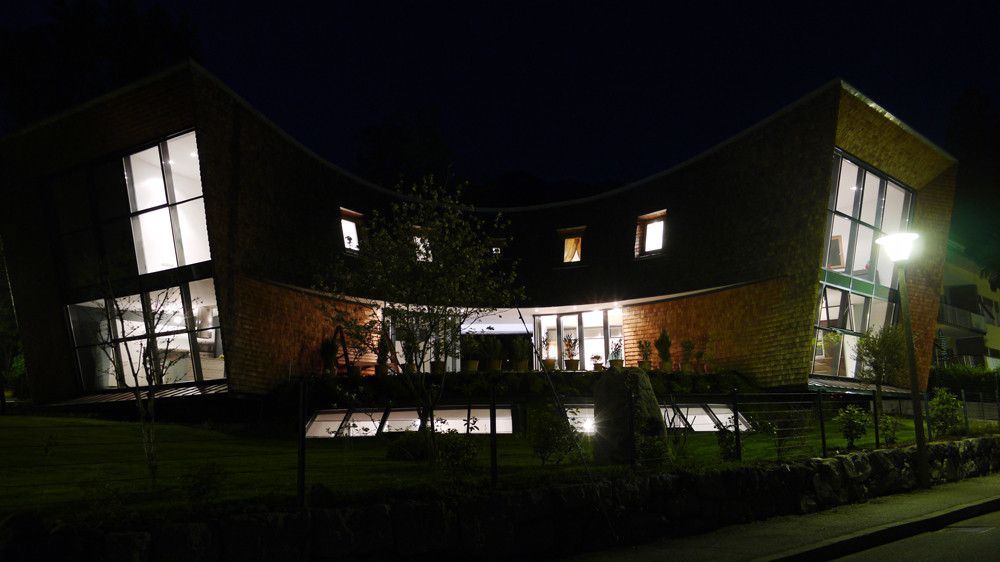 The form answers to the characteristics of local mountains and its three-dimensional facade to the path of the sun. The windows and the shadings are positioned such way, that the energy balance is optimized and the panorama is introduced in picture frames.