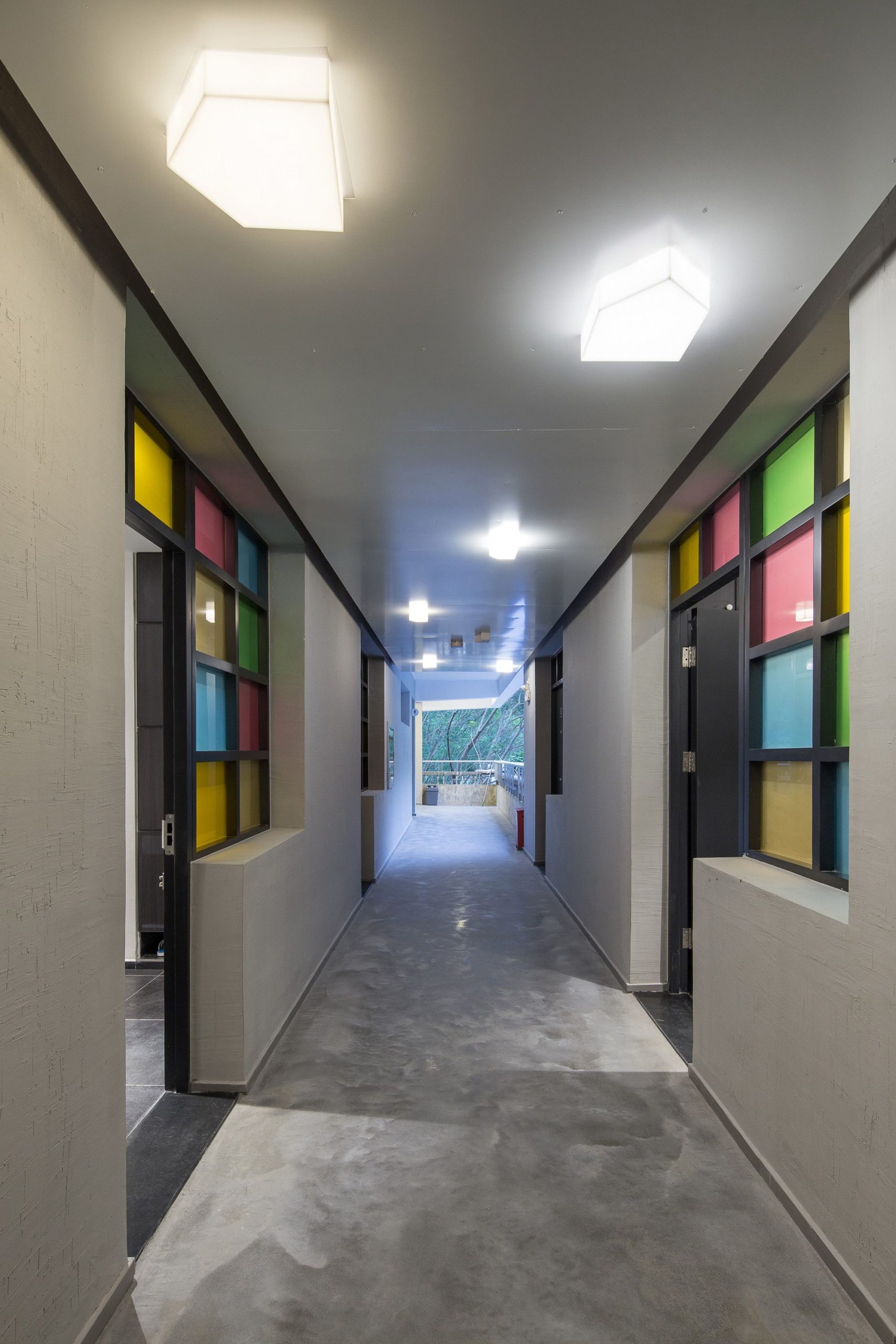 The living units, located from the 2nd floor to the 4th, brought back to life by small adaptations of the original framework bringing the opportunity of a new perspective to the original spatial composition. All these subtle but influential alterations create a new breath to this once ruined structure.