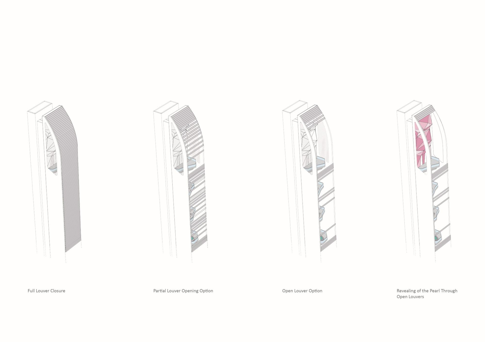 An economical lightweight tubular truss and steel cross bracing structure form the basis of the tower. The designers have incorporated a mechanically programmed louver system, to control the visibility of the platform which offers a 180° panoramic view, at the top of the Observation Tower.