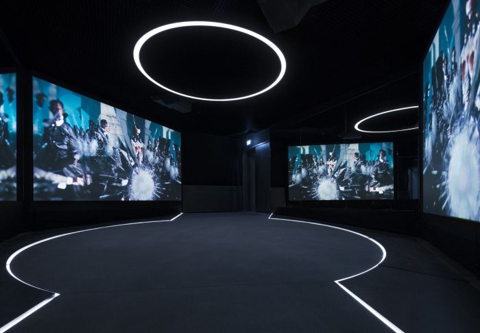 The imposing angles of the architecture compliment the breathtaking mountain panorama while large windows frame views over the Ötztal Alps and locations used in the making of Spectre. The majority of the installation is inside the mountain itself with only the entrance, exit, two projected windows, and the Plaza exposed to the outside. The building is stabilized at 1ºC, so as not to affect the permafrost. A reduced palette of architectural materials of concrete, steel, and glass is used throughout the museum in keeping with the modern brand identity of 007. 007 ELEMENTS features nine different chambers, or galleries, as well as an outside plaza. Each gallery showcases the fundamental elements that define a Bond film and explores the legacy of the making of 007 movies with a special focus on Spectre.