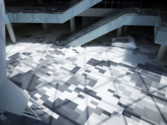 The scale of the ground floor public area demands for an eye-catching surface that provides the space with an identity while at the same time establishing a connection to its context. The floor depicts an abstract image of the hibiscus flower, guiding shoppers towards different zones of interest. Thus the differentiated floor design becomes part of the strategy of enticing the shoppers’ sense of exploration and bringing them to the upper floors.