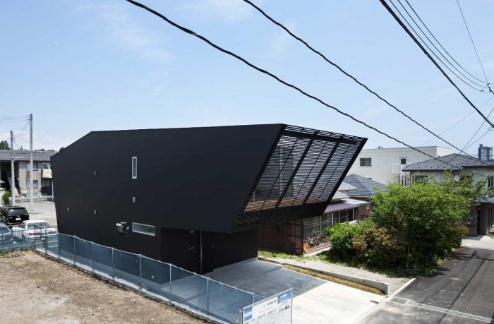 Lift is a 1,334 square foot single-family residence located in the residential district of downtown Sendai, Japan. The minimalistic cantilevered volume soars over the parking lot with the second level holding a courtyard in the center. This provides open space in the compact volume. The material is wood without supporting structures. From the living room with the face-to-face kitchen and the dining space lying on the floor, the borrowed scenery of the courtyard and the balcony create a placid atmosphere.