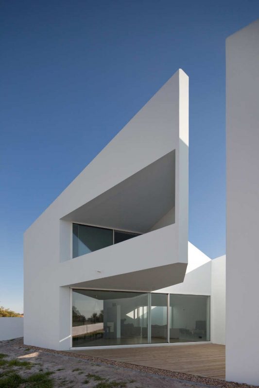 The last cantilever house is this 2,691 square-foot contemporary residence which is located in the tiny village of Possanco, Portugal. The construction is inspired by popular architecture and stuns with aggressive, provocative forms. The compact aspect of the volumes is very much provoked by the terrain, which is a transition area between the new urban strip and the protected agriculture zone. The asymmetrical roofs and the white color of the residence are supposed to serve climatic purposes during hot summers.