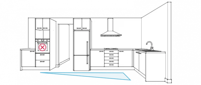 Your kitchen should not be the primary access point to the rest of your house, meaning no one should cross the kitchen work triangle on foot. The refrigerator is an exception.