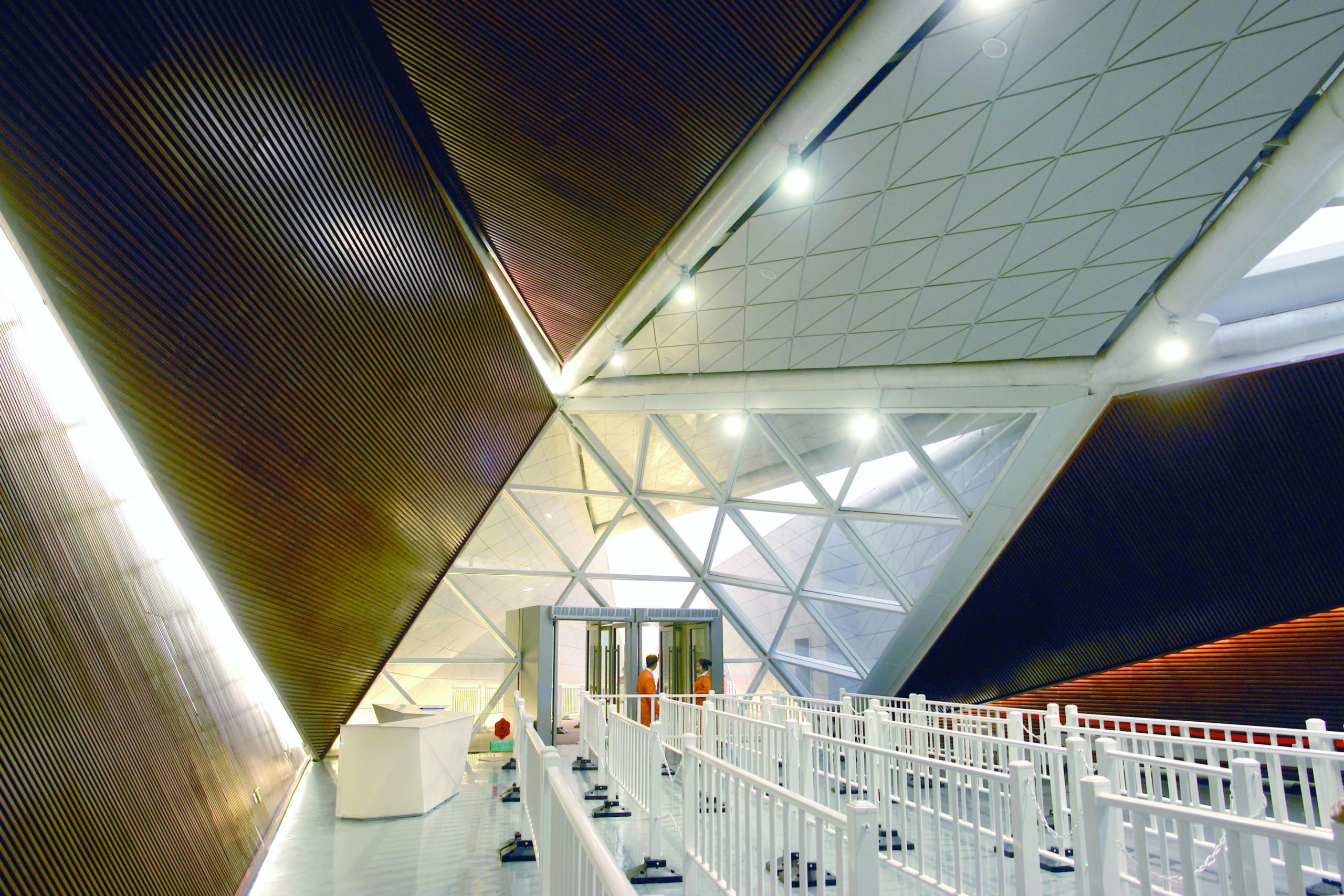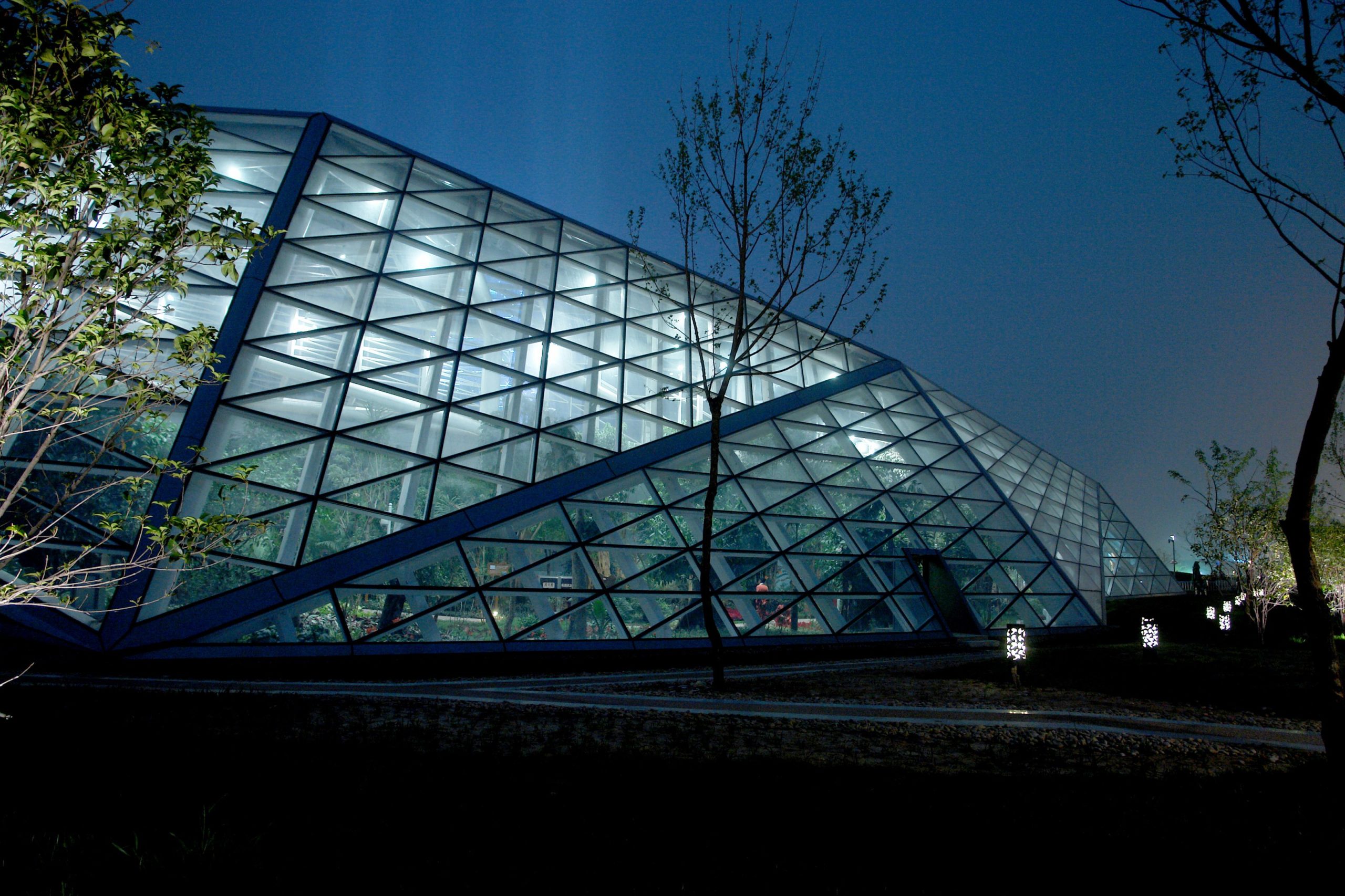 This Plasma Studio-designed greenhouse is far from traditional ones—its inclined facades and its form being semi-submerged into the landscape making it look like a crystal. The horseshoe-shaped plan creates the needed circulation to accommodate unique planting and zoning conditions while generating an interior open-air courtyard acting as the focal point of the project.