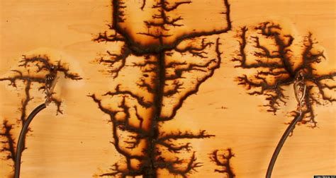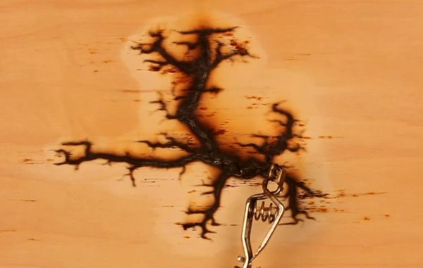 Fractals are all around us, as Mandelbrot would certainly say. A rather interesting and exciting represenntation of this is a project done by the Pratt student Melanie Hoff. Connecting cables to different points on a large plank of wood the artist then passed 15,000 volts of electricity through and into the material. A camera caught the process as it occurred.