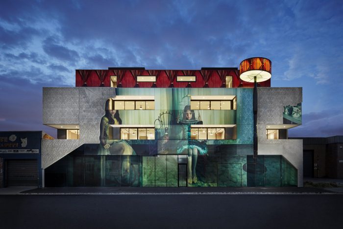 Although the 2 Girls building is certainly not the first of its kind to use a DigiGlass facade (see David Bowie’s Ziggy Stardust featured on an apartment building planned for Prahran, Melbourne), it is definitely among the front-runners for trying to ingrain the facade artwork right into the soul of the building. According to Architect Billy Kavellaris, director of KUD Architects, “We wanted to integrate Samantha’s art into the fabric of the building, not just create surface treatment. We are not just sticking art on walls to promote sales. We’re creating a building that will not offer exciting and highly liveable dwellings but will also be a piece of urban theatre and create future heritage for the city.“