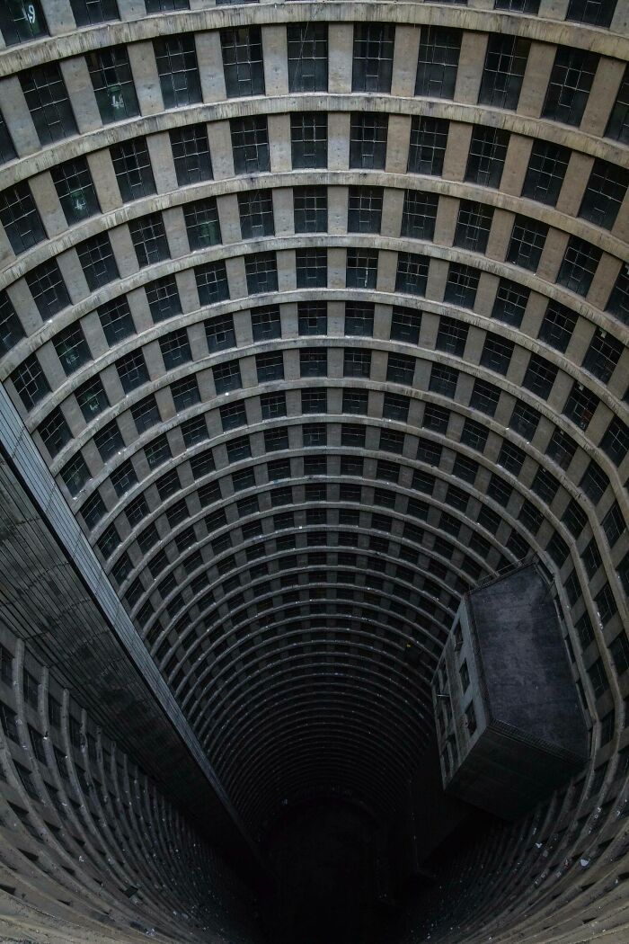 The 55 stories high hollow center of the tower was actually supposed to bring light into the interiors, but in this picture, it just brings shivers down my spine.