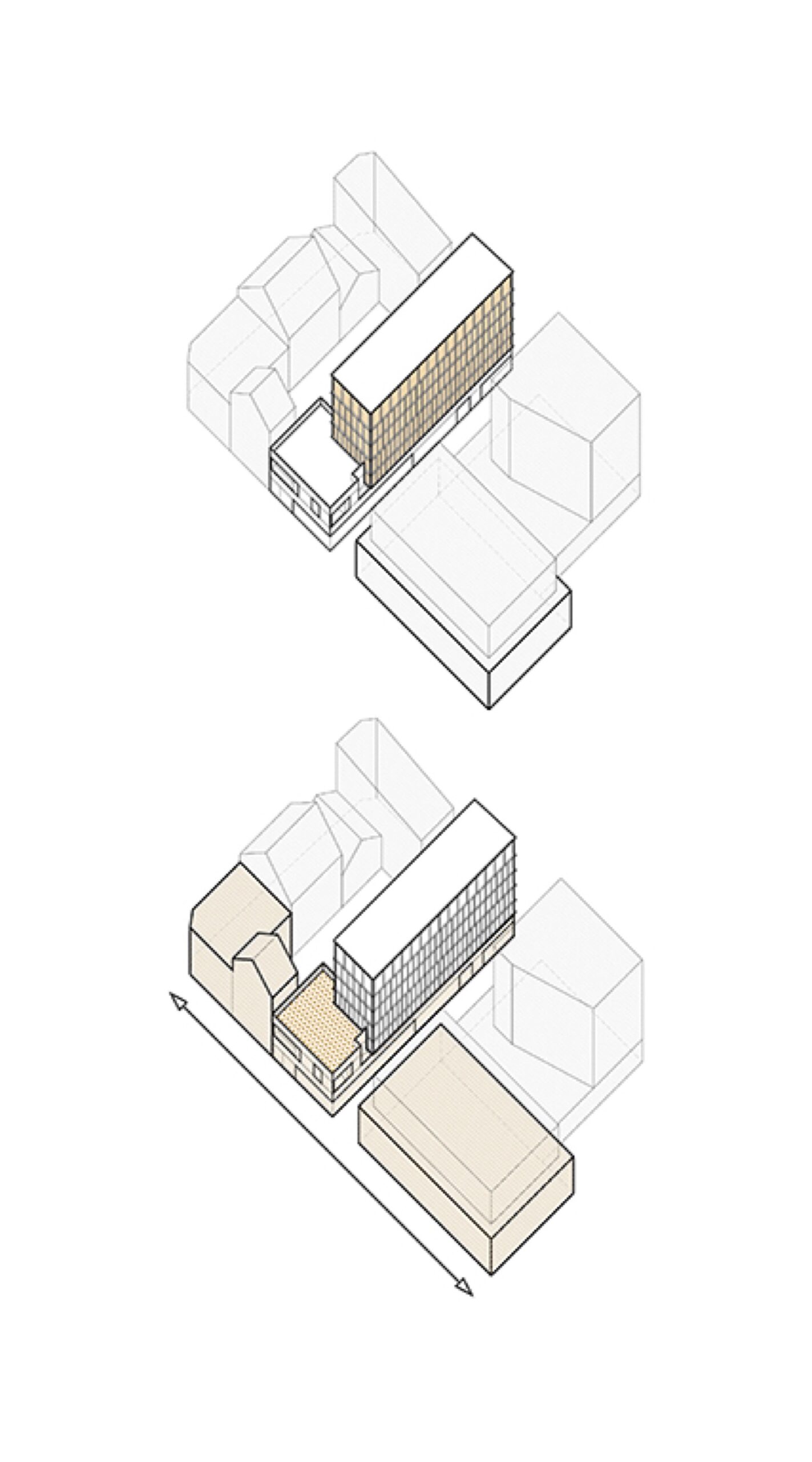 The Hindigo plot, named after the warehouse which still occupies the land, is developing in depth and will offer its little side to Boulevard Léon Bureau, thus allowing it to assert a more marked verticality. Backing onto a suburban house with discreet moldings and slightly deviating from the DY10 blockhaus, a converted vestige of the Second World War, our project will forge a horizontal link between these two iconic constructions and will affirm its difference through a vertical and light emergence. This is where our dual ambition lies, that of creating a strong architecture combined with soft insertion.