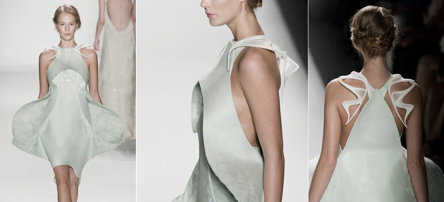 3d Fashion Collection, Hannah Soukup and Ludovico Lombardi have spontaneously collaborated on these stunning neck-pieces and belt designs which integrated 3d printed elements, for the New York Fashion week. These creative 3d fashion collection accessories brilliantly compliment Hannah’s Supima Design Competition Capsule Collection for Mercedes Benz Fashion Week (MBFW) 2013, set in New York. The theme for this collection was entitled ‘Insides’, “exploring the hidden physical and personal inner self. This unique human self, which is often draped with exterior layers of life and superficiality, reveals itself outwardly in waves of transformation and possibility,” as the designers explain it.