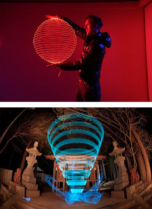 Has anyone ever used ‘time-lapse’? Trevor Williams, an expert in ‘Light Painting’ and the founder of Fiz-iks, a group of photographers based in Japan, is. They specialize in creating exceptional 3D light sculptures.