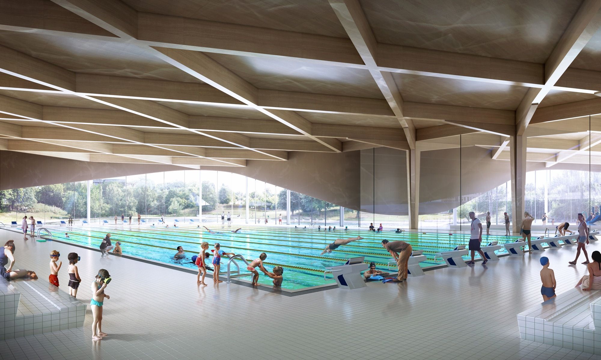 3XN’s design, named ‘Vågen’ which means ‘wave’ in Swedish, is meant to create a relationship between the building of the aquatic center, which will be made entirely of wood, and the waterside. The building will act as a mediator between the city and the lake. Kim Herforth Nielsen, founder and principal 3XN explains: “We envisioned a building where the architecture gives hints of its functionality, the waveform in the façade, as well as the large panoramic windows, blur the boundary between pools inside and lake outside.”