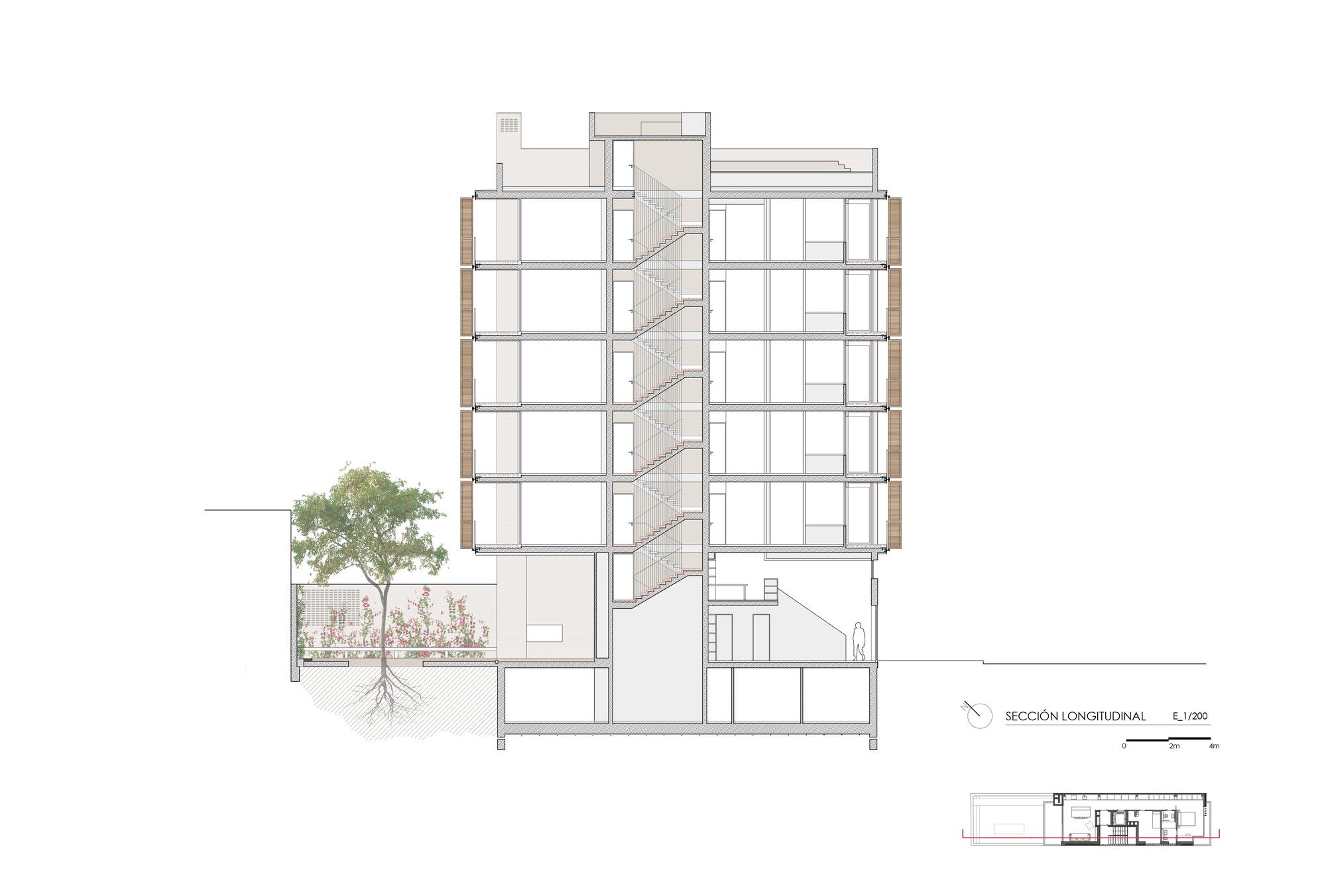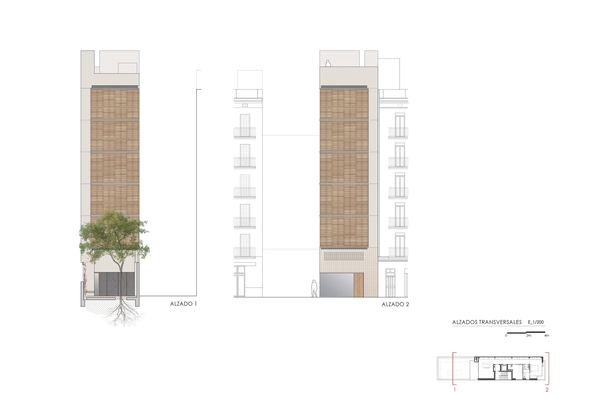 4 friendly couples join in in a community project, building a house in Barcelona with five apartments with common spaces of coexistence. Promoters of the building, with architect Thomas Lussi as initiator, are the residents themselves, who decided to build a new habitat in Barcelona. They found a narrow 6m wide and 30m long property in the Poblenou district in a typical perimeter block development within the Cerdà grid.